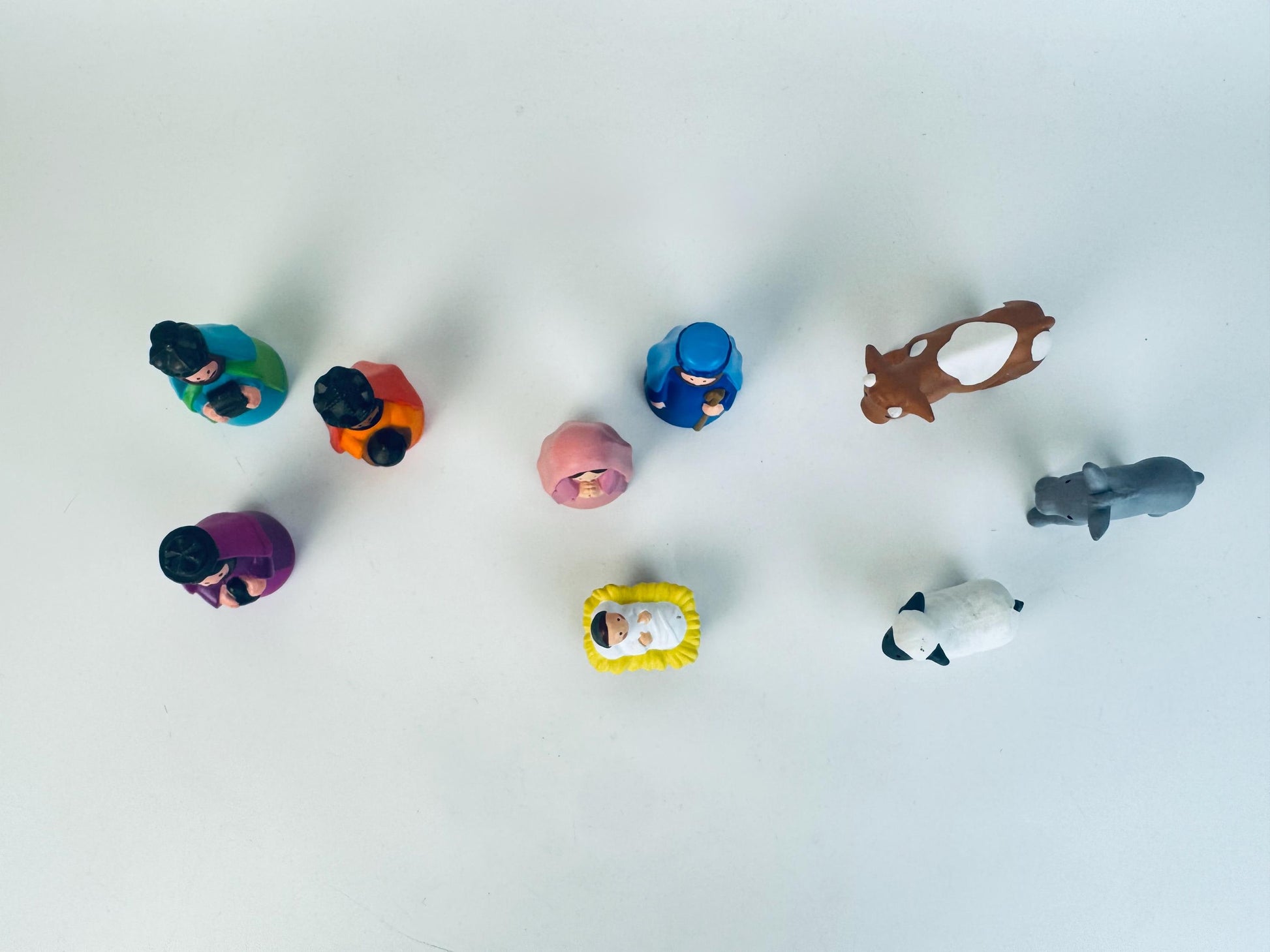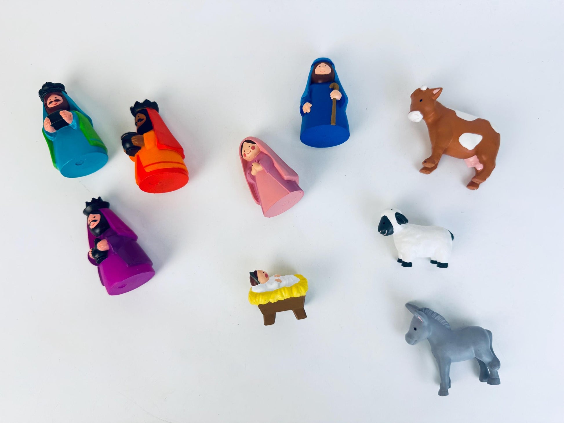 Vintage AVON My First Christmas Story Nativity Set Multicolour Hard-Rubber 9-Piece Kids Christmas Creche Display