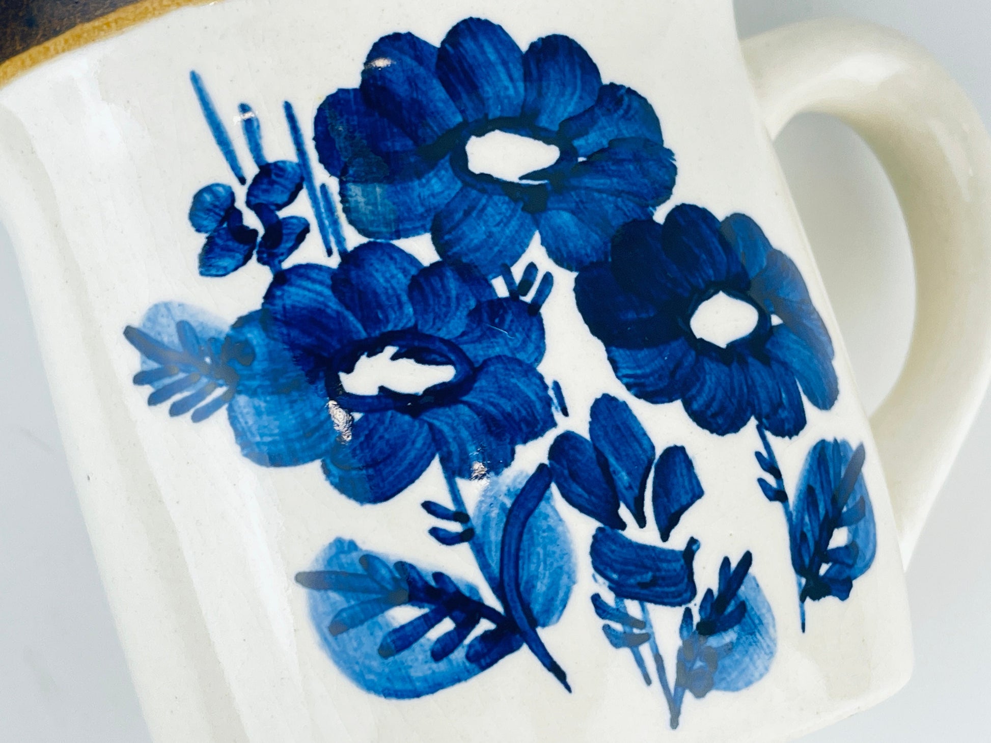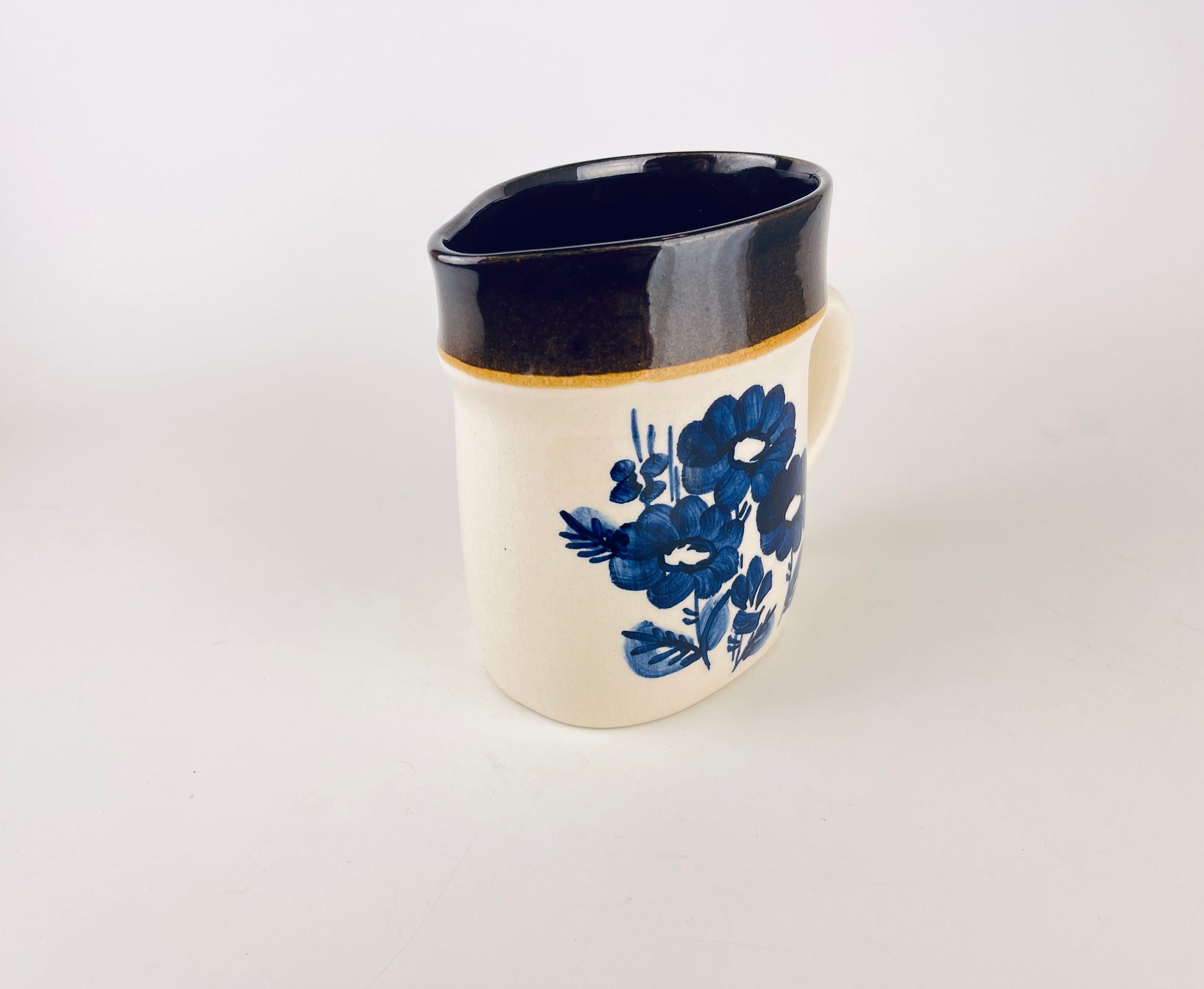 🌿 Captivating hand-painted blue floral ceramic jug from the 1970s, beautifully glazed stoneware with a classic German Modernist edge — perfect as a functional pitcher or a sculptural vase to anchor a shelf or tabletop. Adds timeless vintage charm and a subtle European accent to your kitchen or living space.