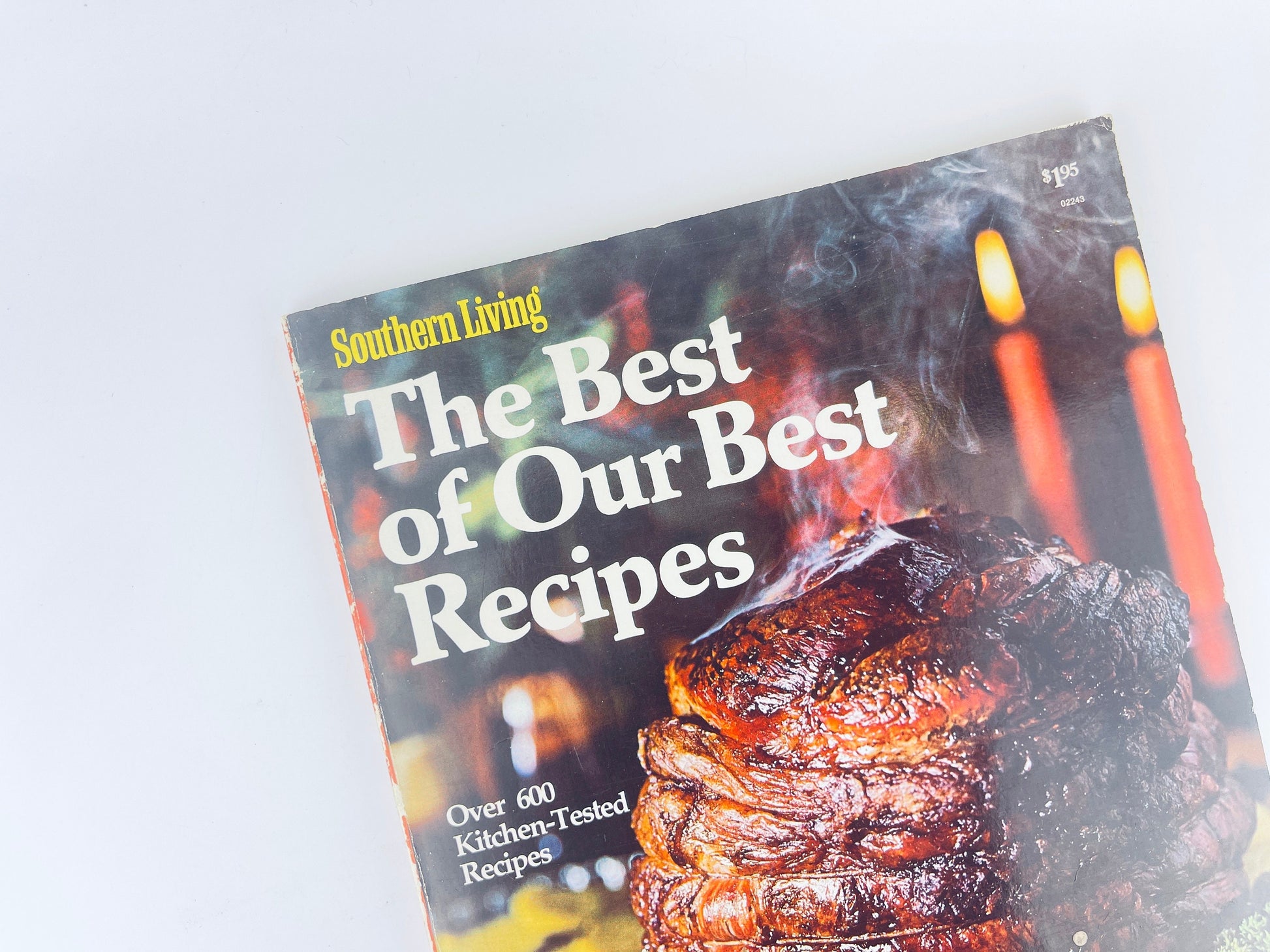 Vintage Southern Living, Le meilleur de nos meilleures recettes : Plus de 600 recettes testées en cuisine (1973). Couverture souple recto et verso. Veuillez noter que l'état est, selon nous, « moyen » pour un livre vintage/d'occasion, et qu'il est basé sur notre opinion subjective. De légères traces de stockage sont visibles sur le recto et le verso. Voir toutes les photos.