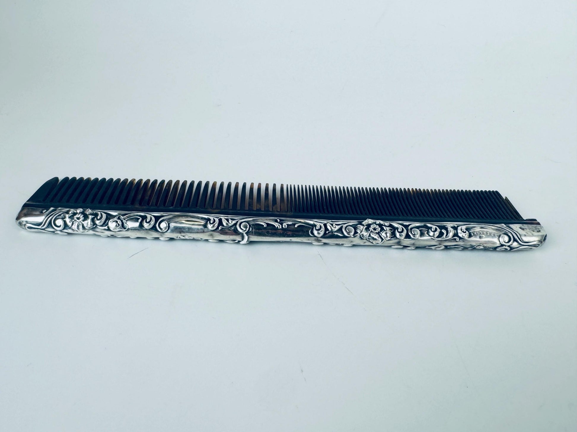 Antique 1920s Art Deco Sterling Silver Faux-Tortoiseshell Comb - Vanity Accessory