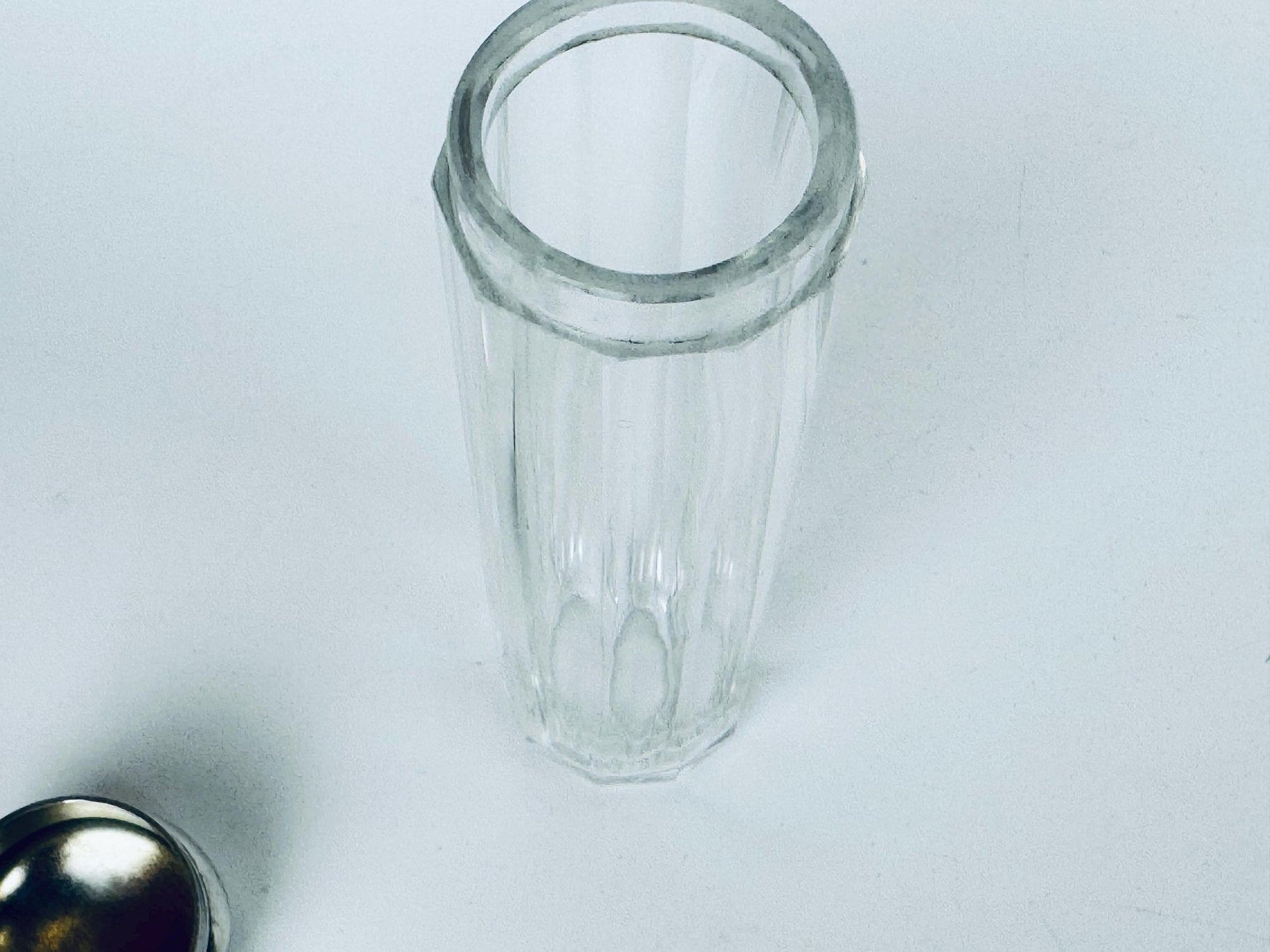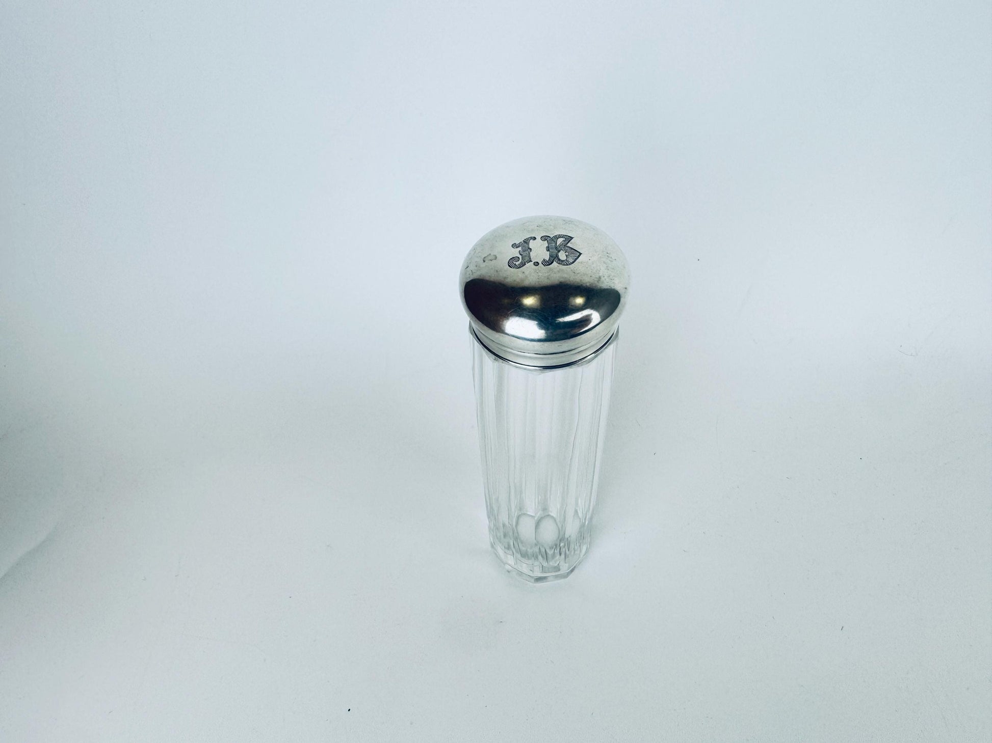 Item is in good vintage/used condition. Does have a small bubble on the bottom base, from production. Sterling lid features a small original ‘J.B.’ monogram, consistent with pieces of this era. There is one spot where there is some light wear on the rivet of the glass. Lastly, there is a small dent on the sterling silver lid. Please see all of the photos. 🫙 🪙
