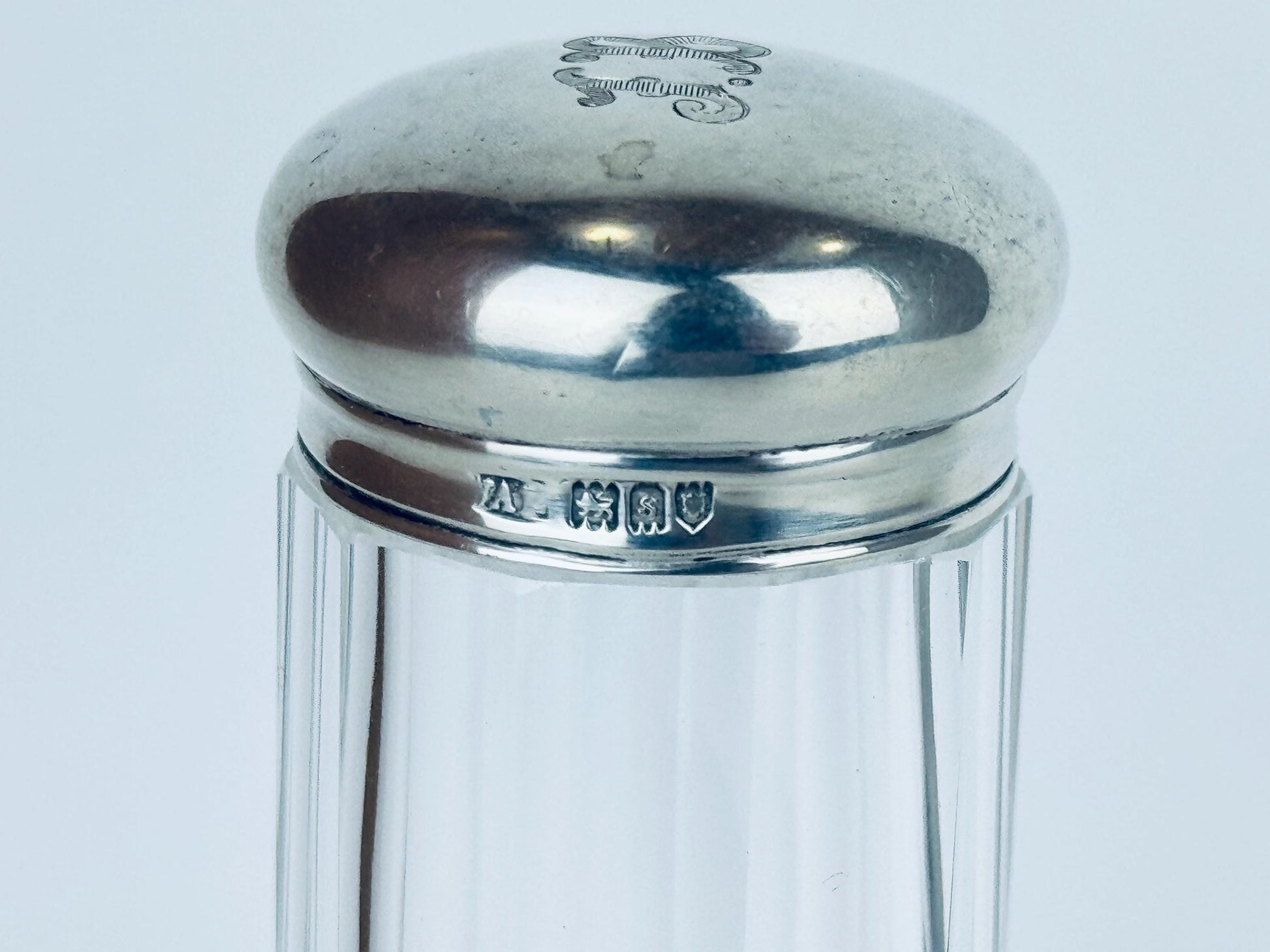 Antique Edwardian Sterling Silver & Clear Cut-Crystal Vanity Jar Birmingham 1900s Dressing Table Accent