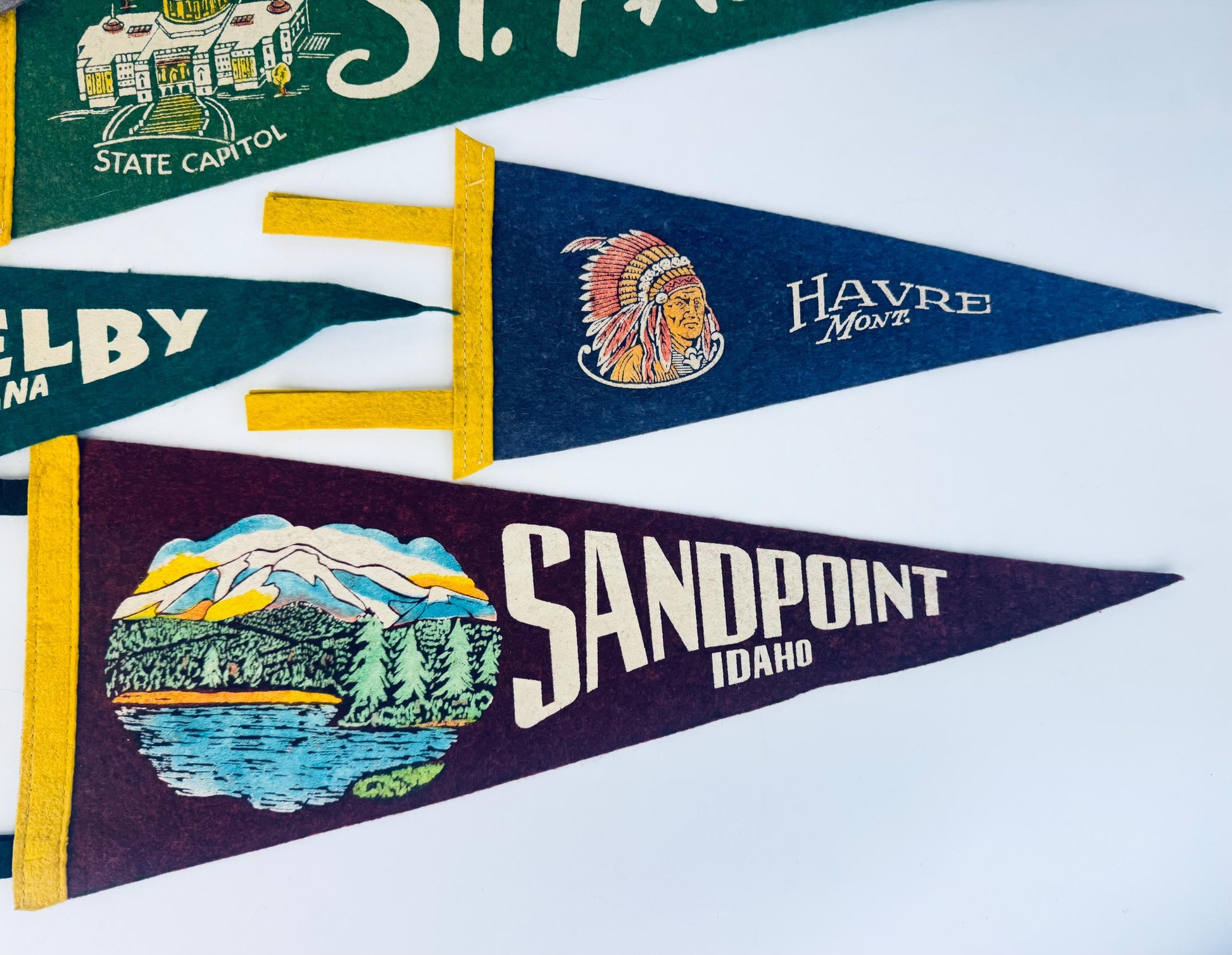 Vintage 1950s-1960s American Souvenir Large & Small Felt Tapered Pennant/Wall Hangings - Each Sold Separately