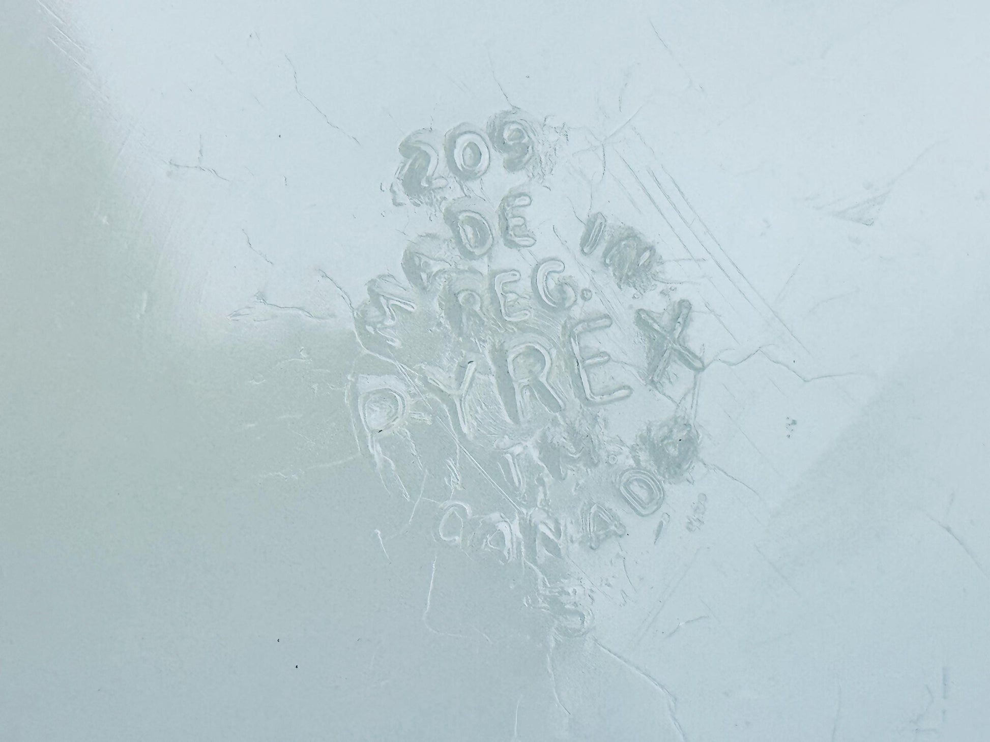 ⌛ History Behind The Piece ⌛ Made at Corning Glass Works of Canada in Leaside, Ontario, this pie dish hails from the 1950s Flamingo Pink line—one of the rare pastel series produced in Canada between 1952 and 1956. Canadian Pyrex pieces were manufactured in far smaller runs than their U.S. counterparts, making the “Made in Canada / PYREX” stamp a true collector’s mark.