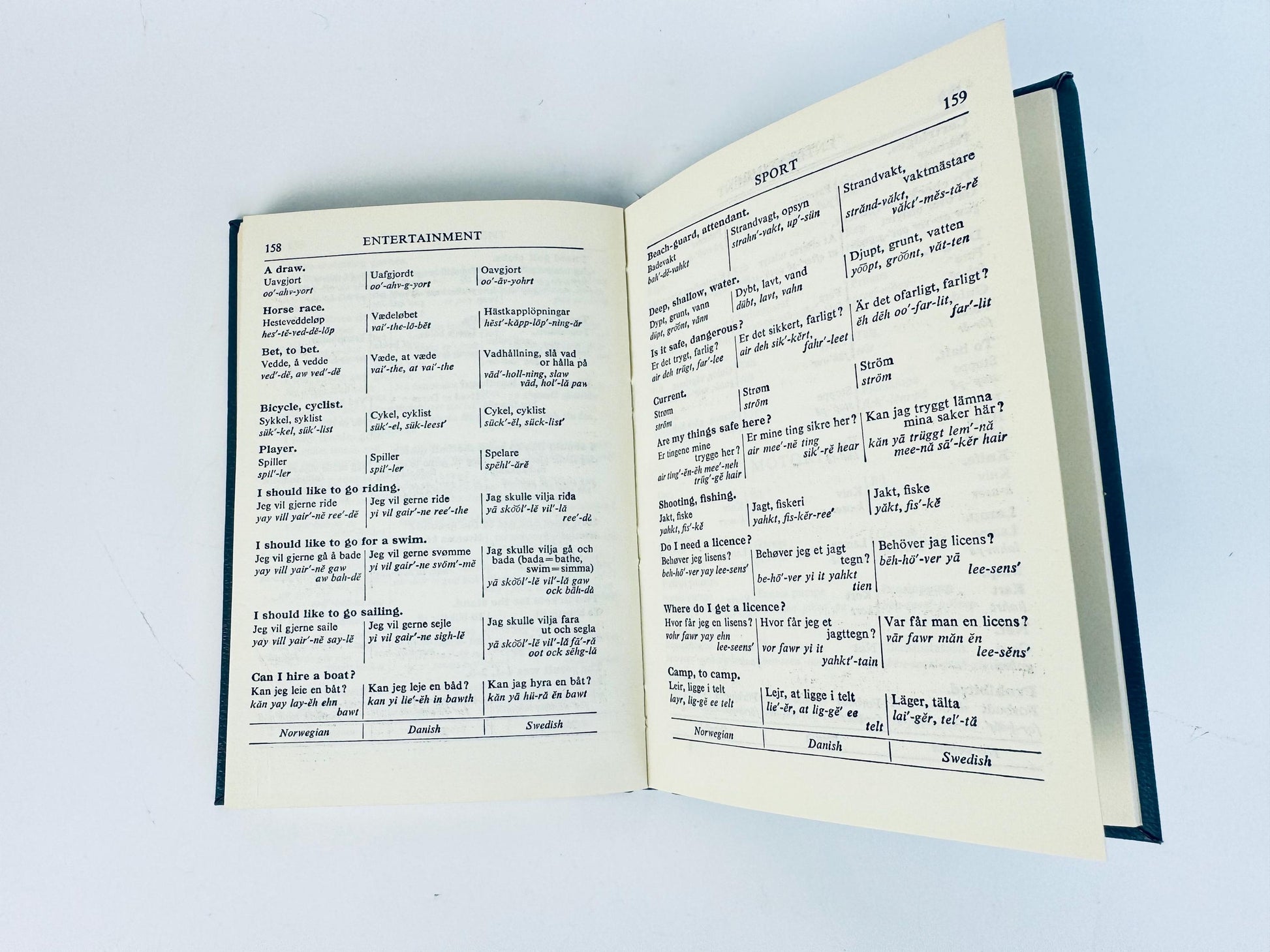 âHistory Behind The Pieceâ Published by Collins in London in 1959, this edition is part of the publisherâs acclaimed âPhrase Booksâ series, which became a travel staple in the postwar years. Compact yet thorough, these guides bridged the gap between elegant book design and functional language instruction, making them beloved companions for anglophone travelers exploring Europe.