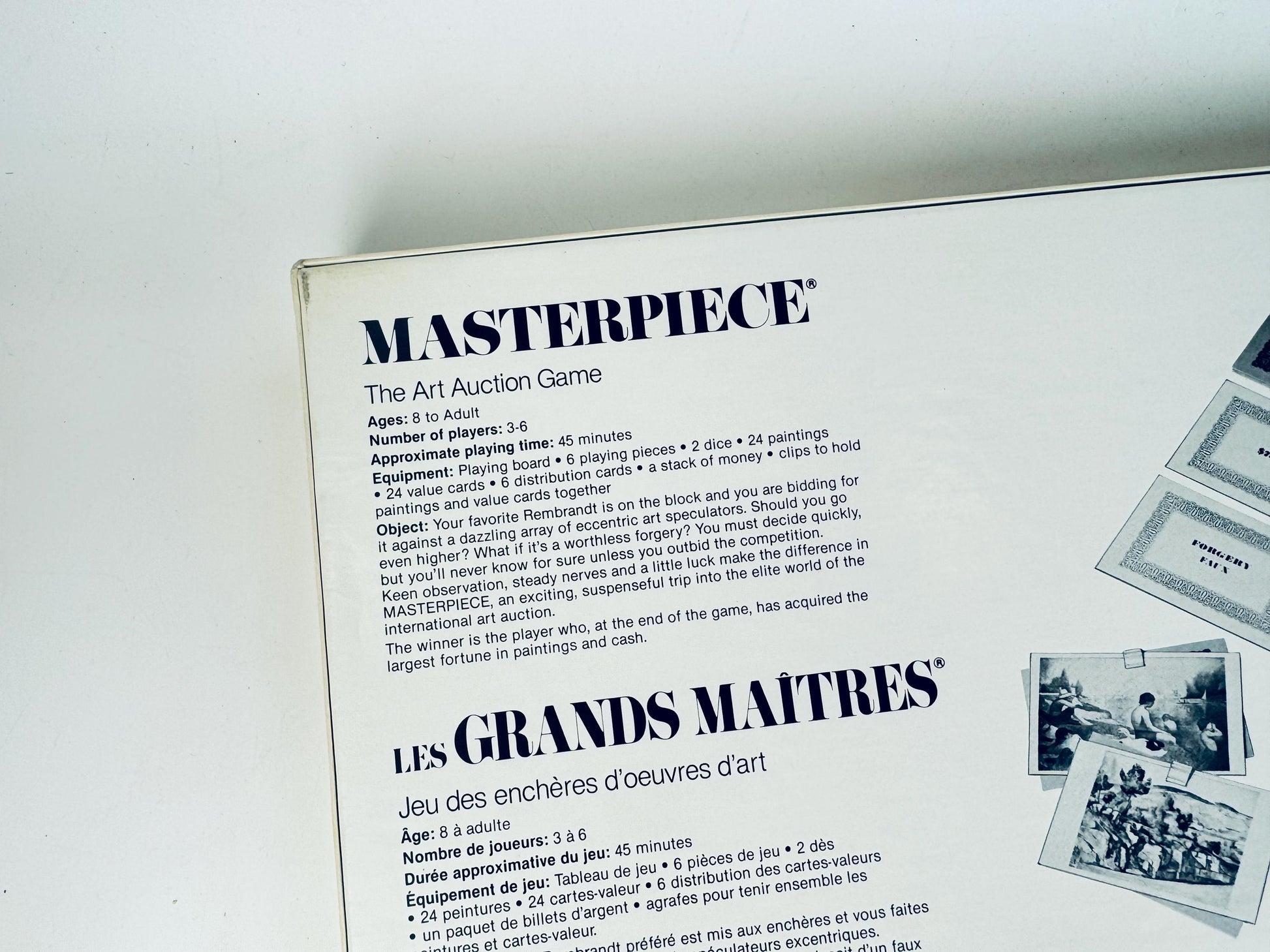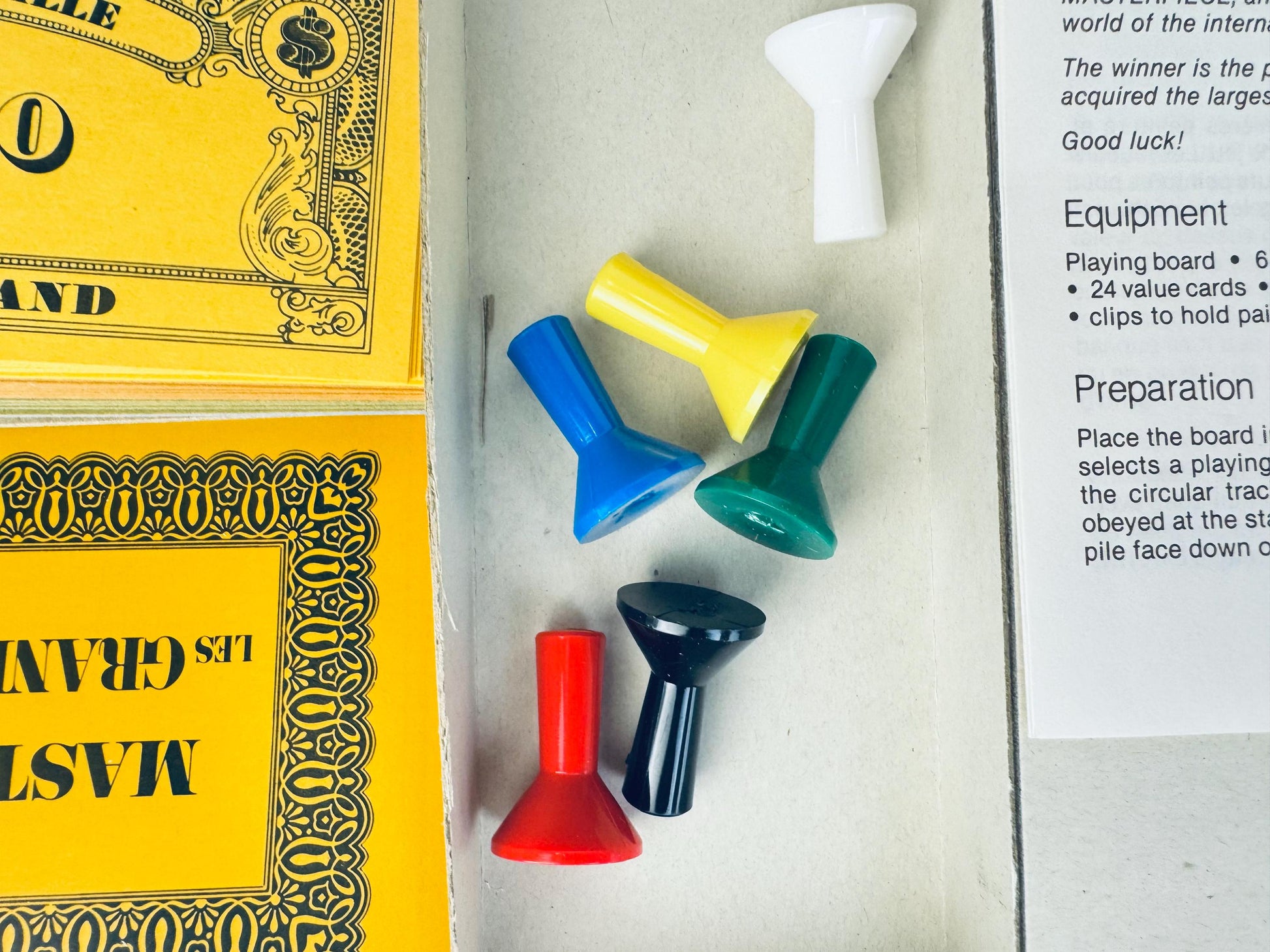 First released by Parker Brothers in 1970, Masterpiece reflected the decade’s fascination with art, status, and collecting. The game was developed during General Mills’ ownership of Parker Brothers, blending mid-century design with a tongue-in-cheek look at the fine art world. Its Canadian bilingual edition—“Les Grands Maîtres”—is notably rarer, produced in Concord, Ontario, and beloved among vintage game collectors for its luxurious presentation and cultural wit.