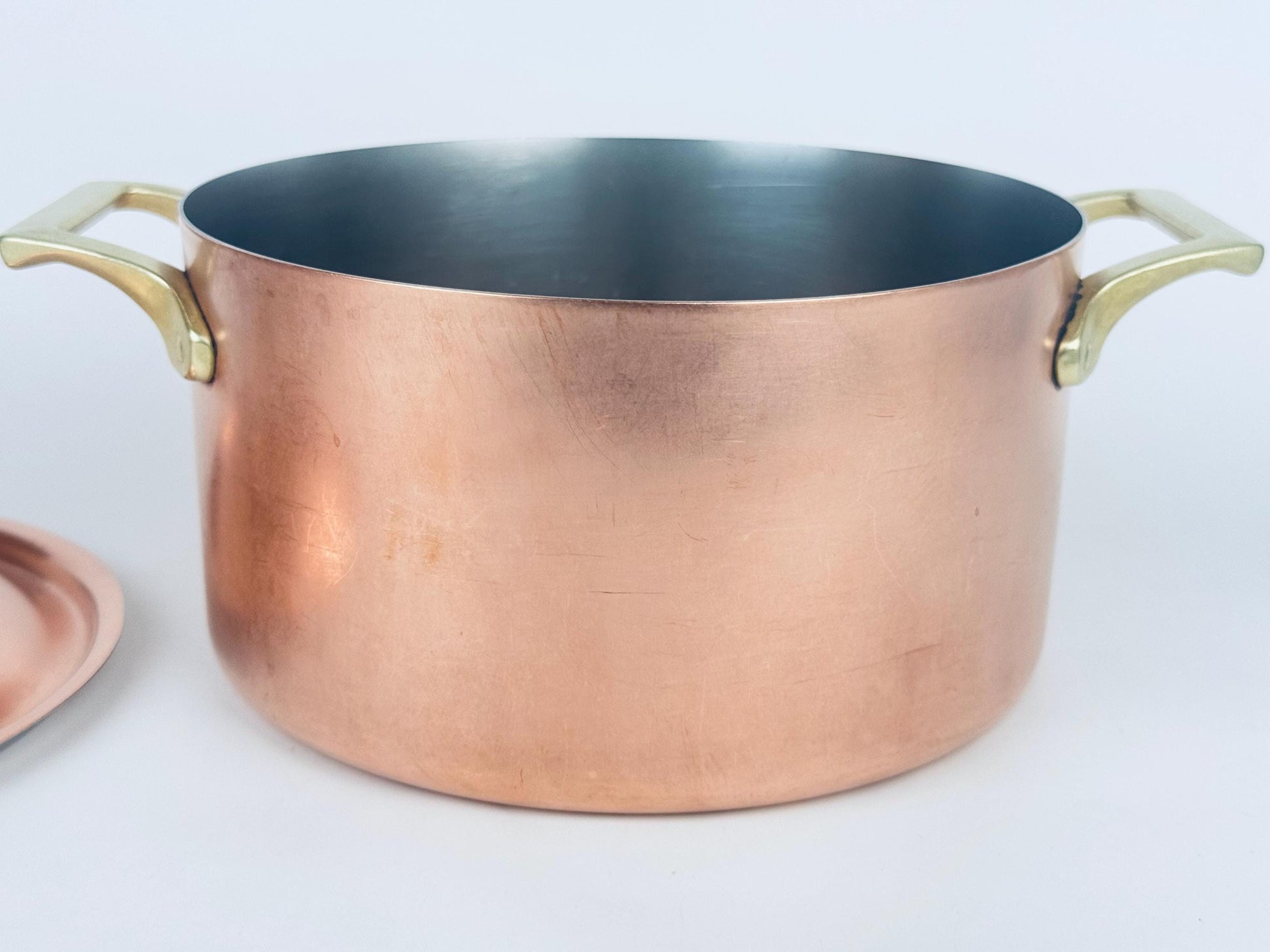 🔥 A sculptural 1970s Paul Revere Limited Edition 3-quart copper stock pot designed with warm hand-finished copper, elegant brass handles, and a sleek brushed stainless-steel interior. Its generous capacity and refined silhouette make it a functional showpiece—perfect for slow simmering, stovetop entertaining, or styling beautifully in an open kitchen.