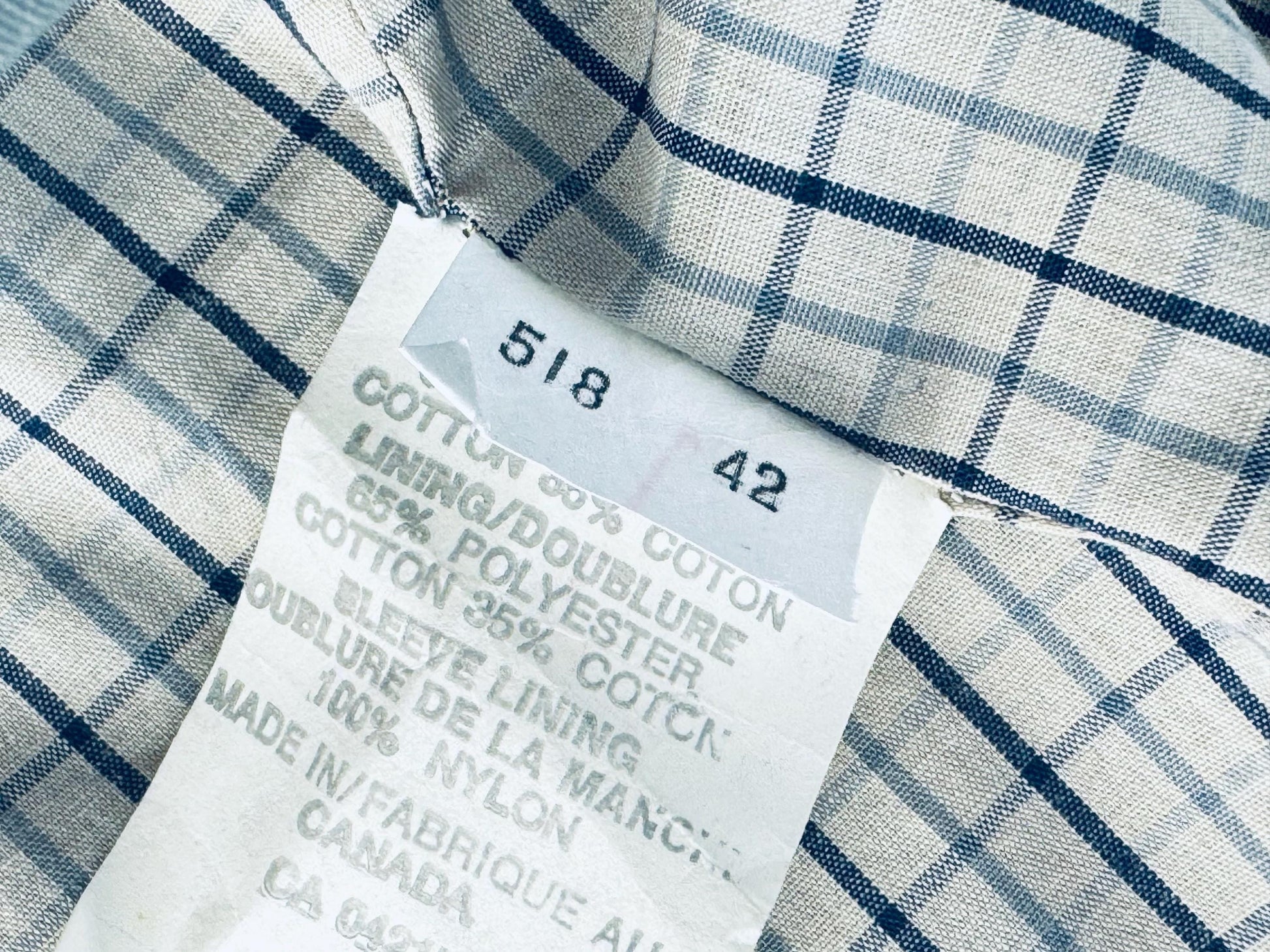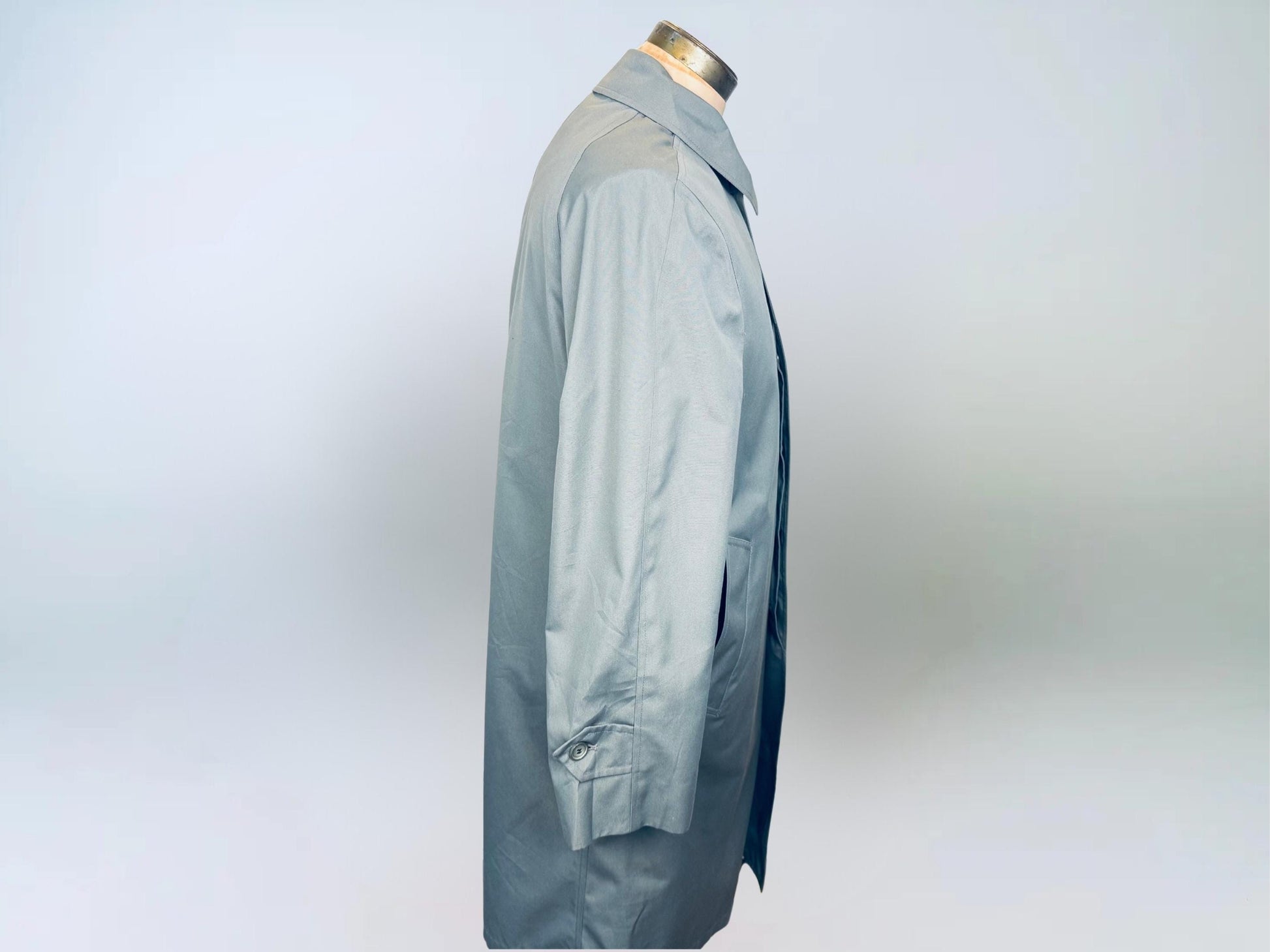 Vintage 1970s London Fog Blue-Grey Cotton Blend Fly-Front Raincoat Made in Canada Classic Plaid Lined Trench Coat