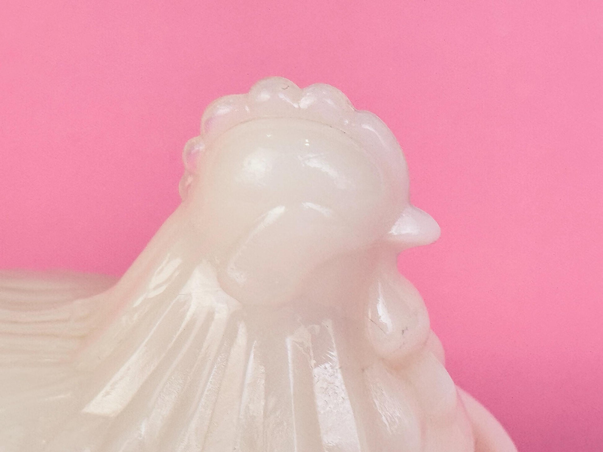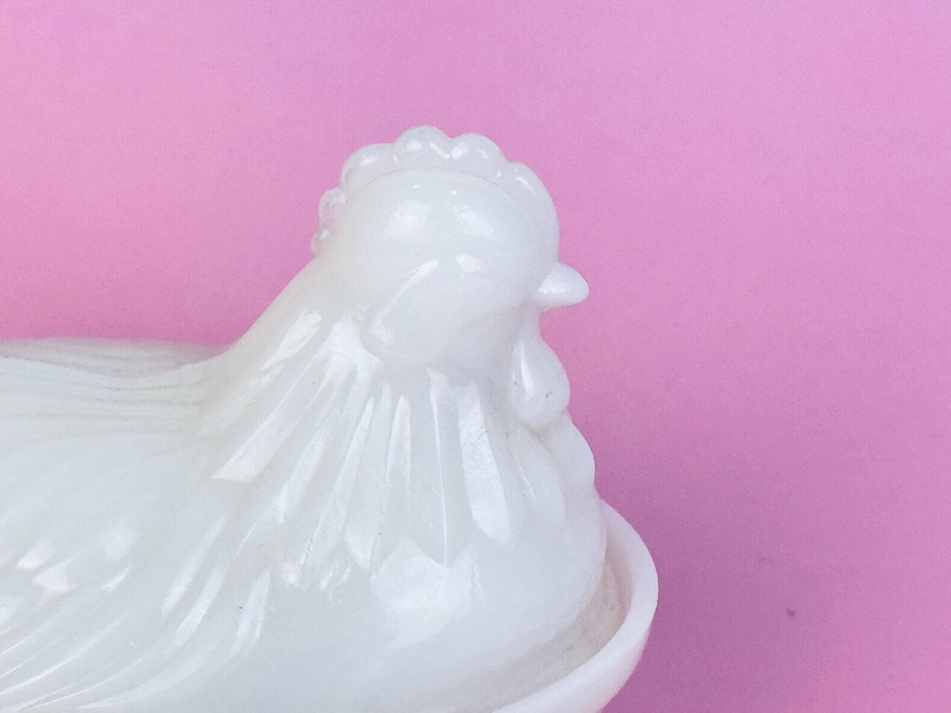 Vintage 1970s Milk-Glass Hen on Nest Covered Dish Farmhouse Tabletop Accent