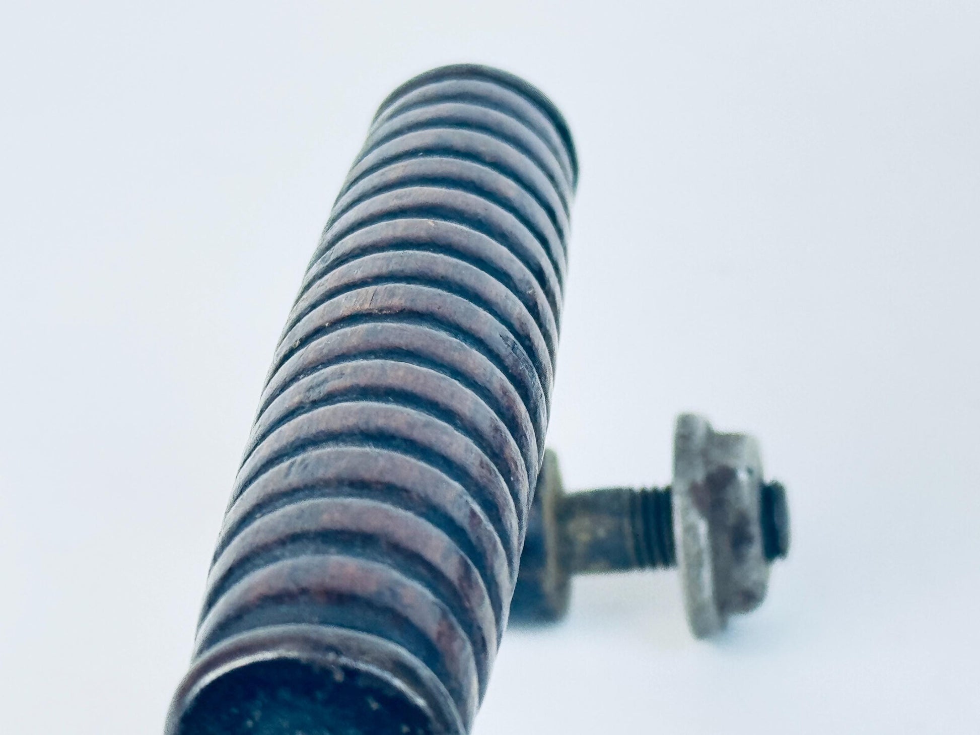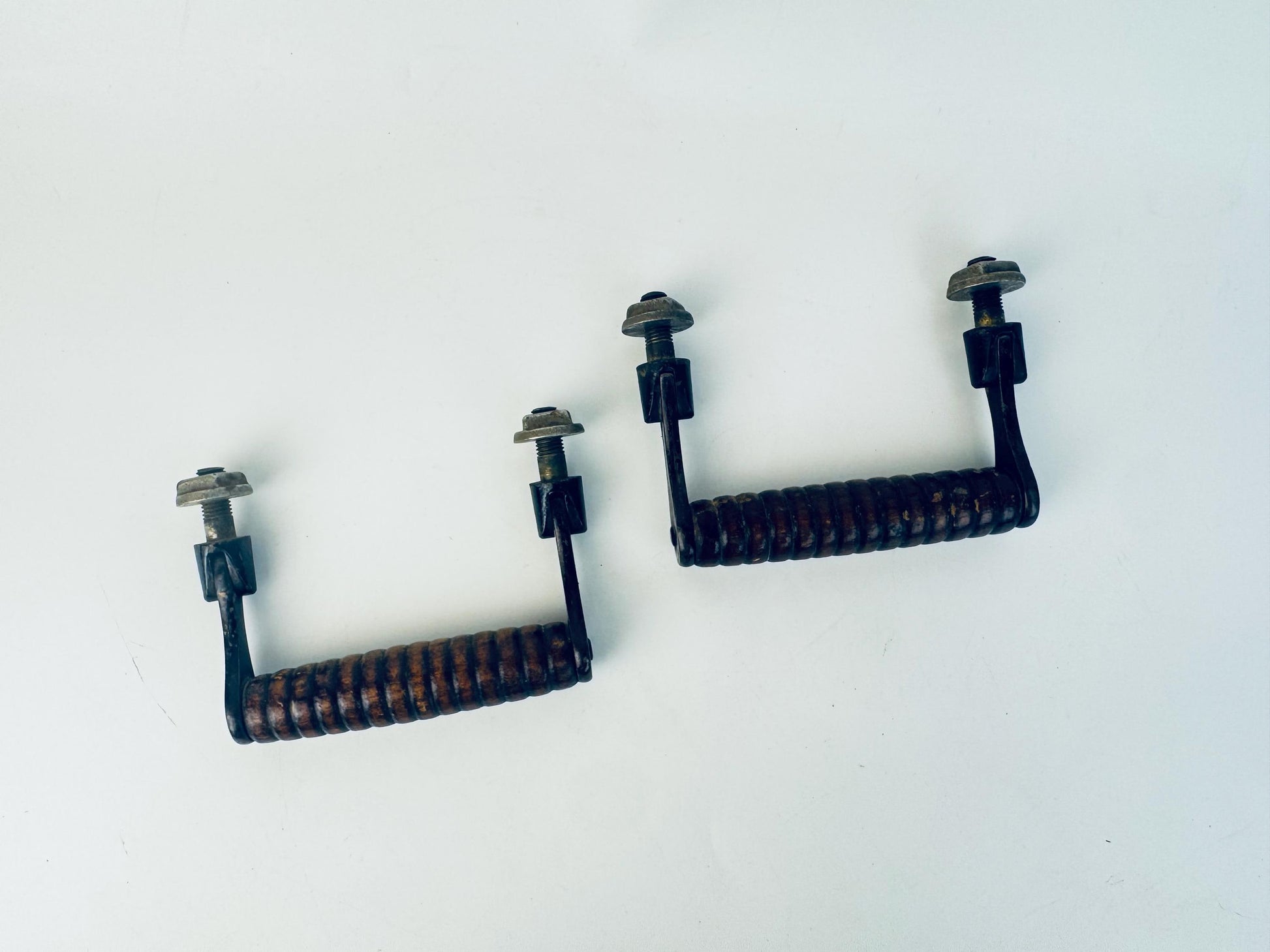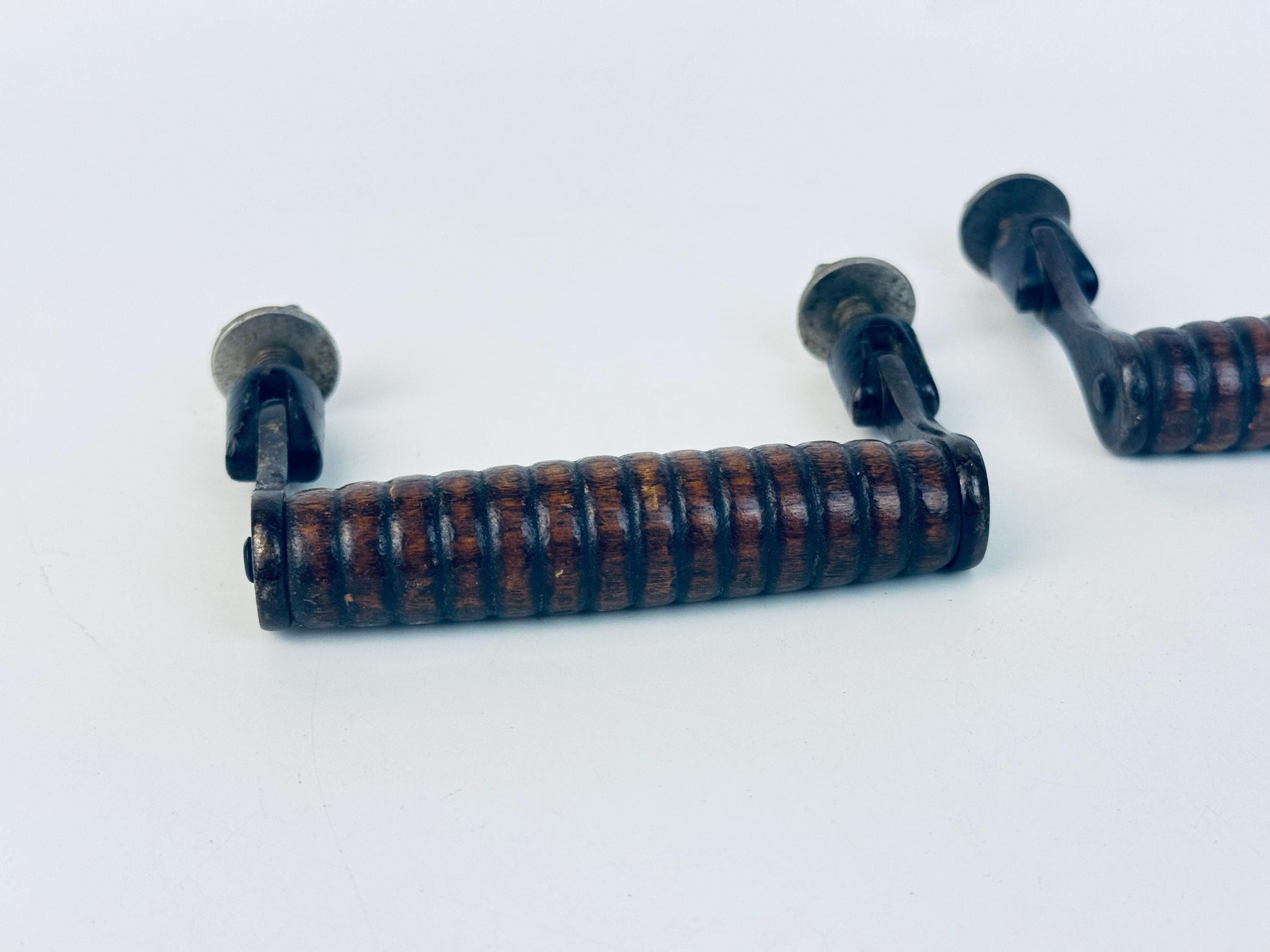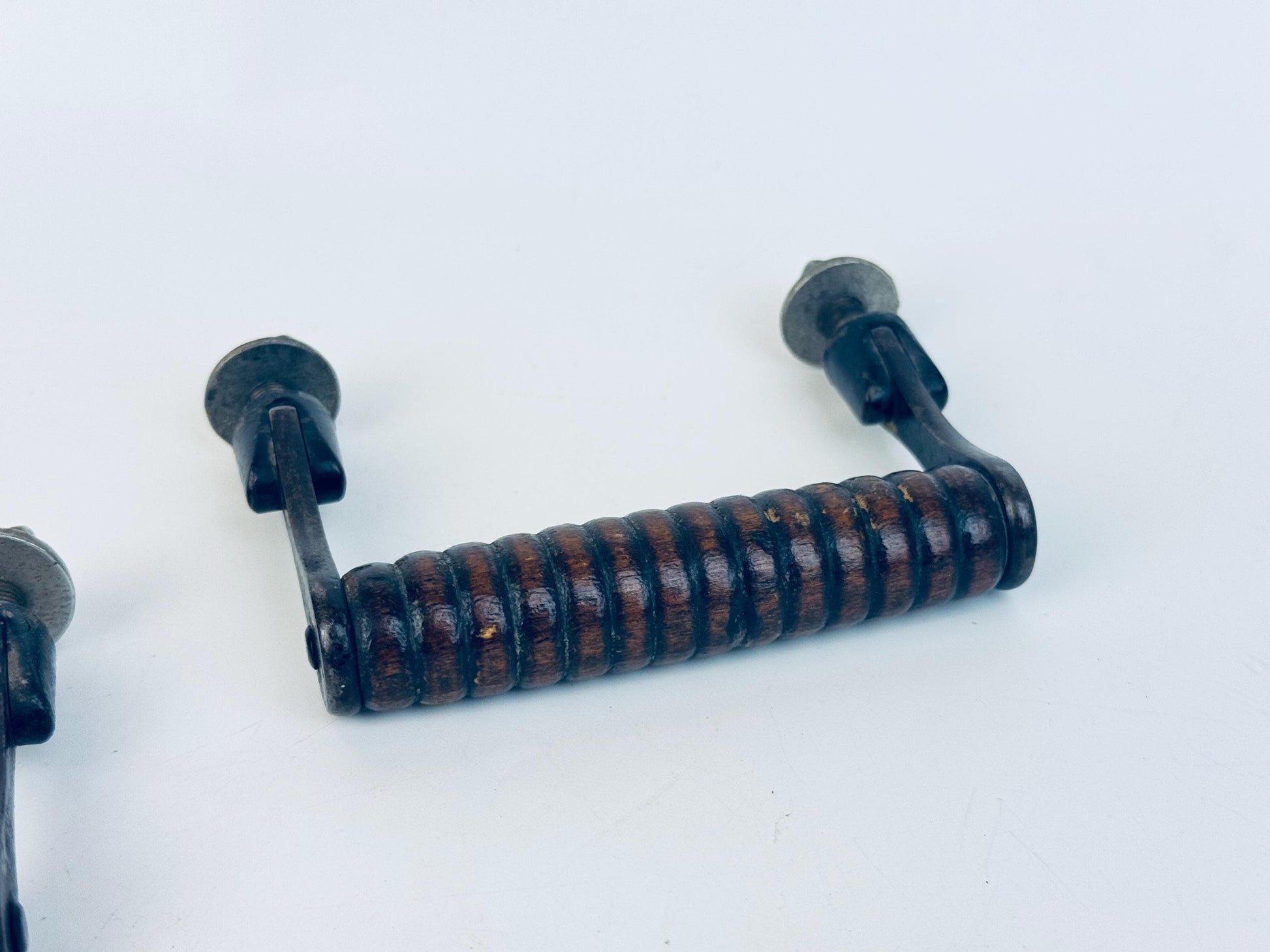 🪵 Distinctive 1970s walnut and metal drawer pulls featuring ribbed wood grips mounted on sleek black metal brackets. Their sculptural, linear form brings a warm retro accent to chests, dressers, and cabinets—perfect for restoration projects or authentic vintage replacements.