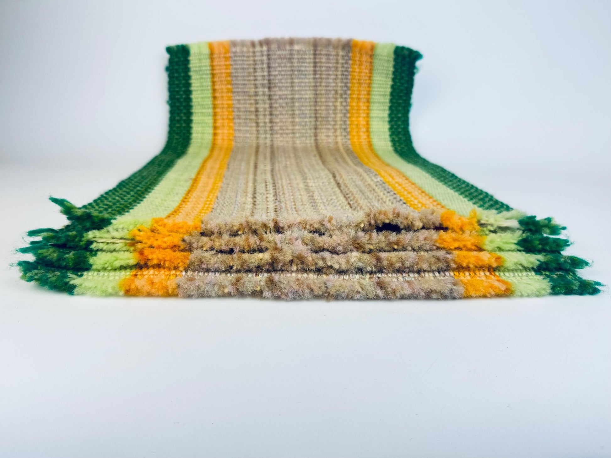 đ„ Vibrant in design and unmistakably retro, this set of four 1970s woven acrylic placemats pairs earthy neutrals with bold stripes of green, gold, and citrus. Each rectangular mat is finished with a subtle fringe edge, offering durable charm for everyday dining or a statement of vintage style at your next dinner party. Perfect for layering under dishware or styling as a colourful tablescape accent.