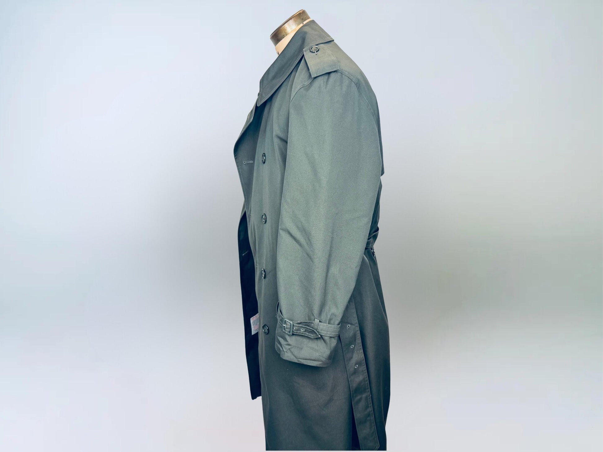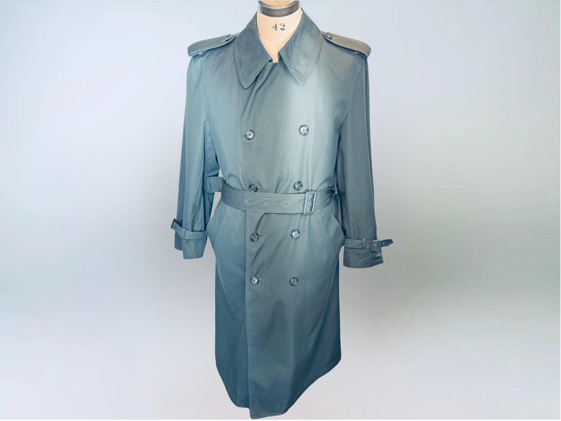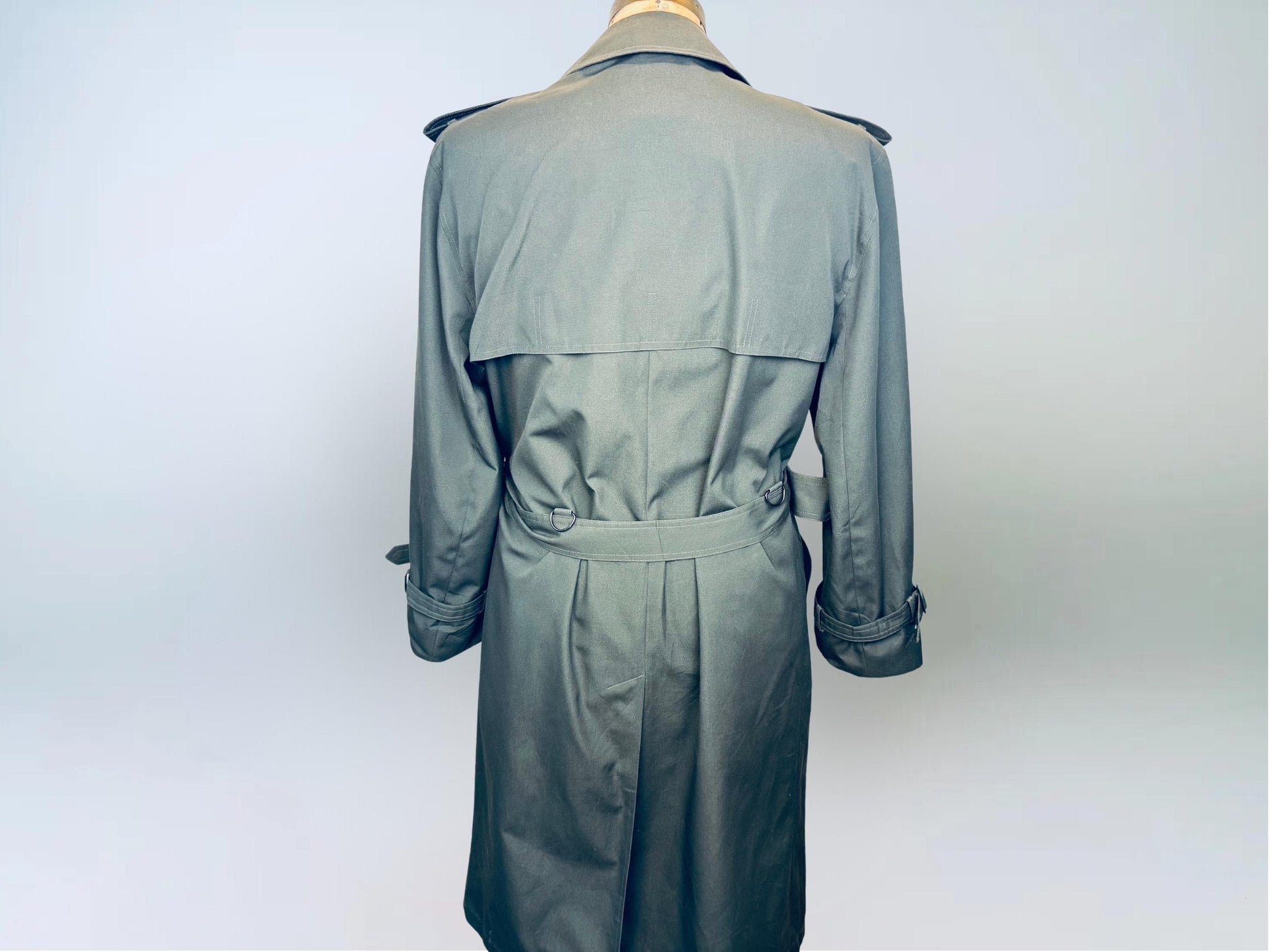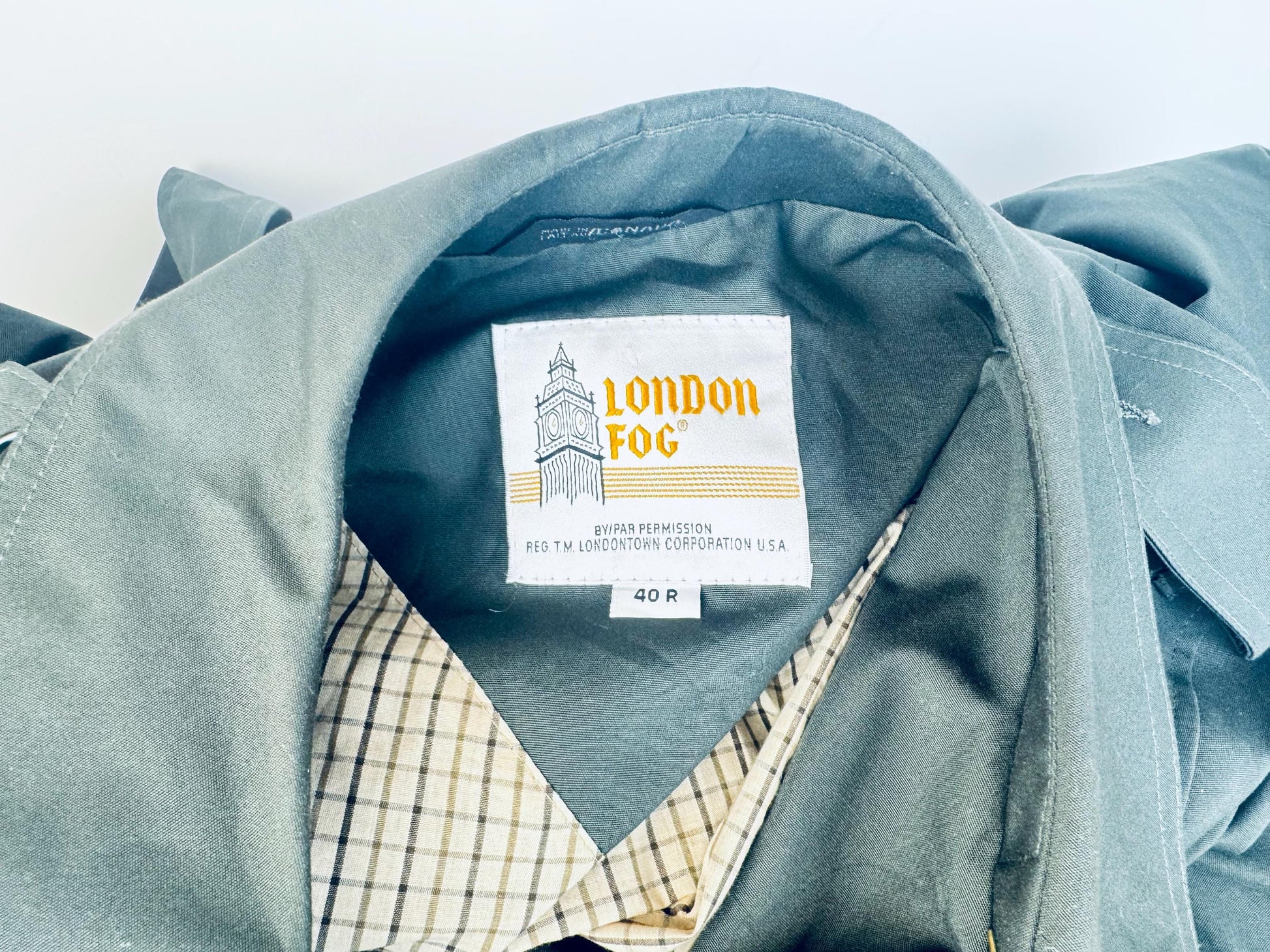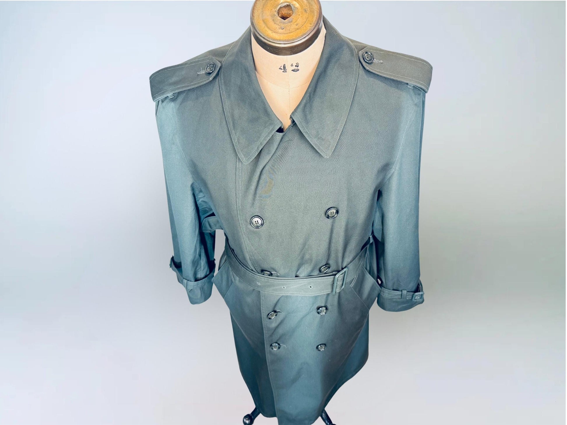 Vintage 1980s London Fog “Sutton Slate Green Military-Style Cotton Blend Belted Trench Coat Made in Canada Water Repellent Raincoat