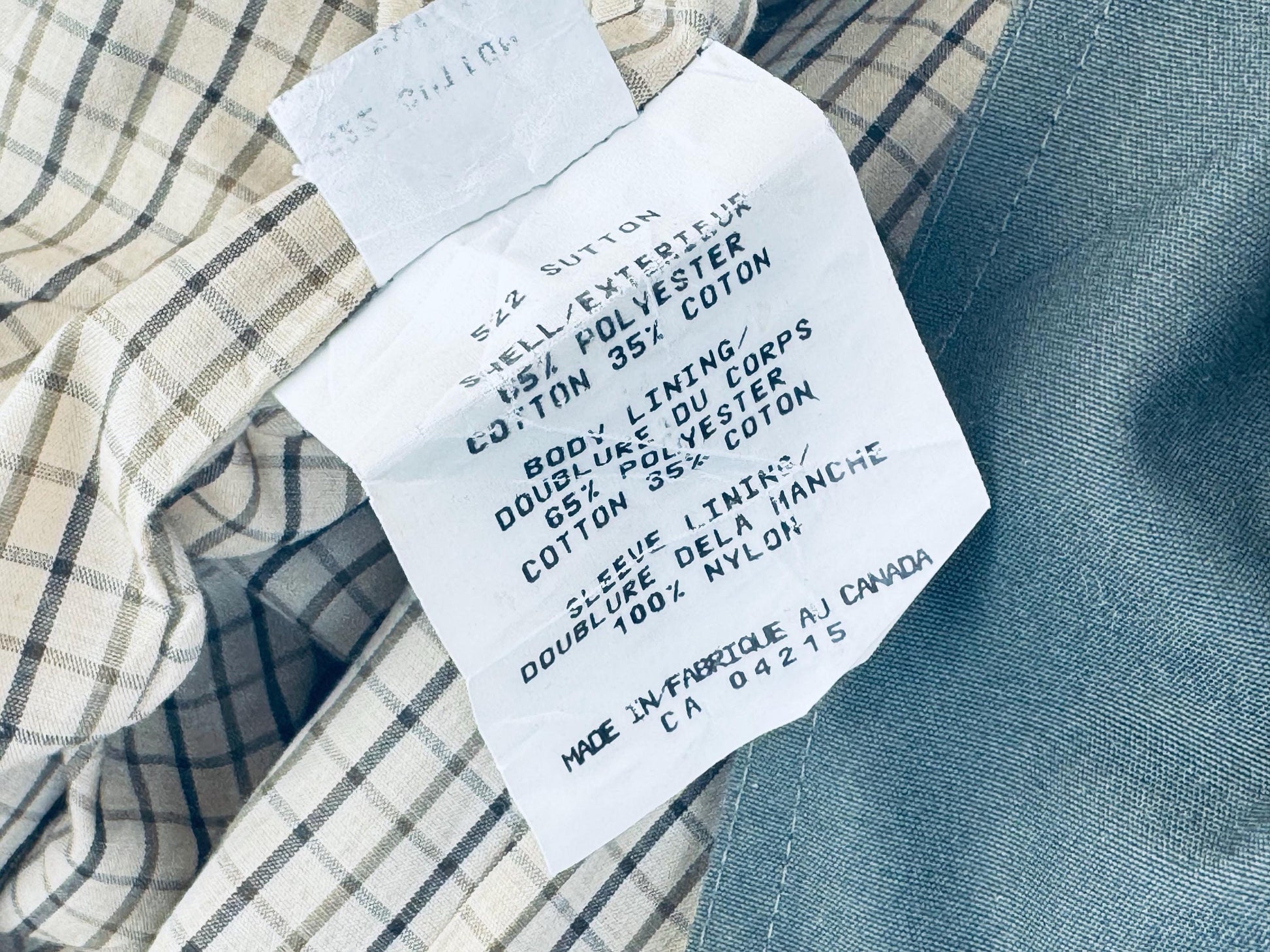 London Fog, founded in 1922, became synonymous with refined weatherwear through decades of innovation. By the 1980s, the brand’s Canadian production introduced washable, water-repellent cotton-blend shells like the Sutton model — bridging timeless British trench styling with modern fabric technology. Each coat was meticulously finished, embodying a standard of quality that has since become iconic in vintage menswear.
