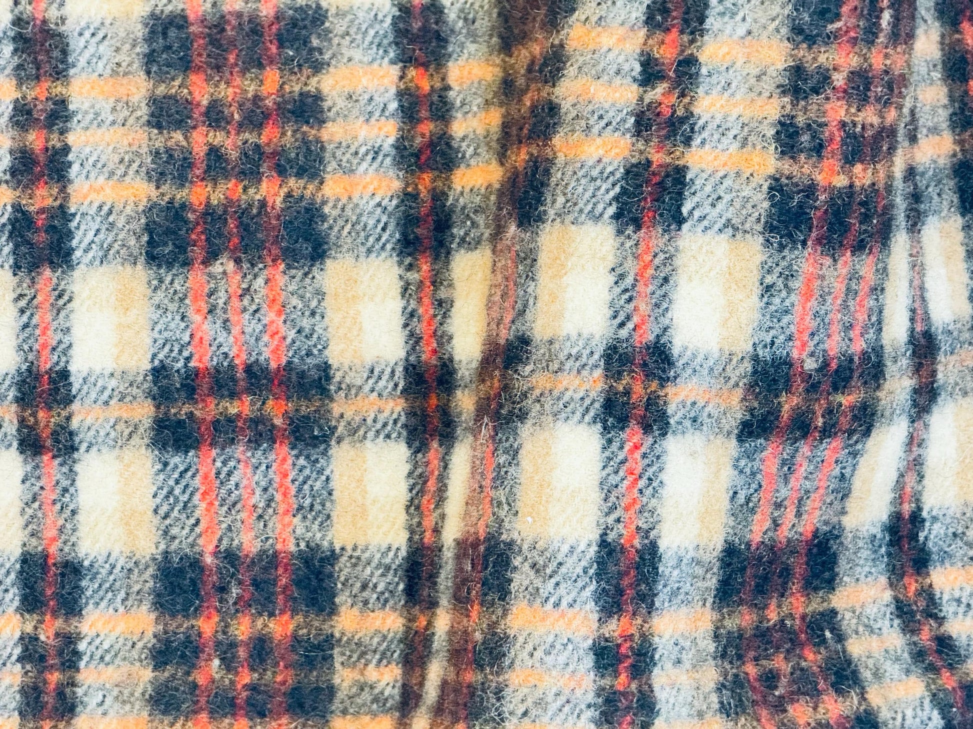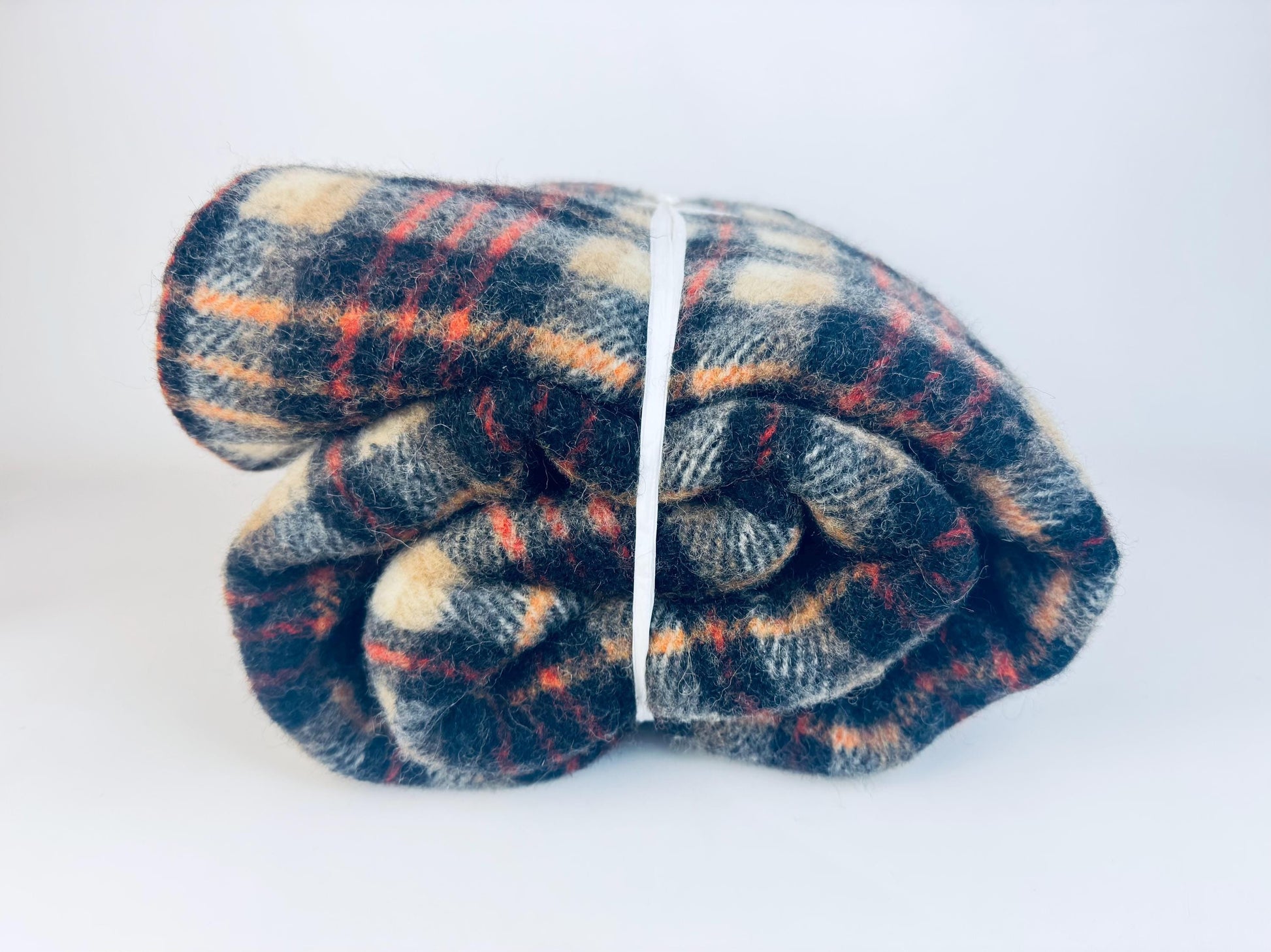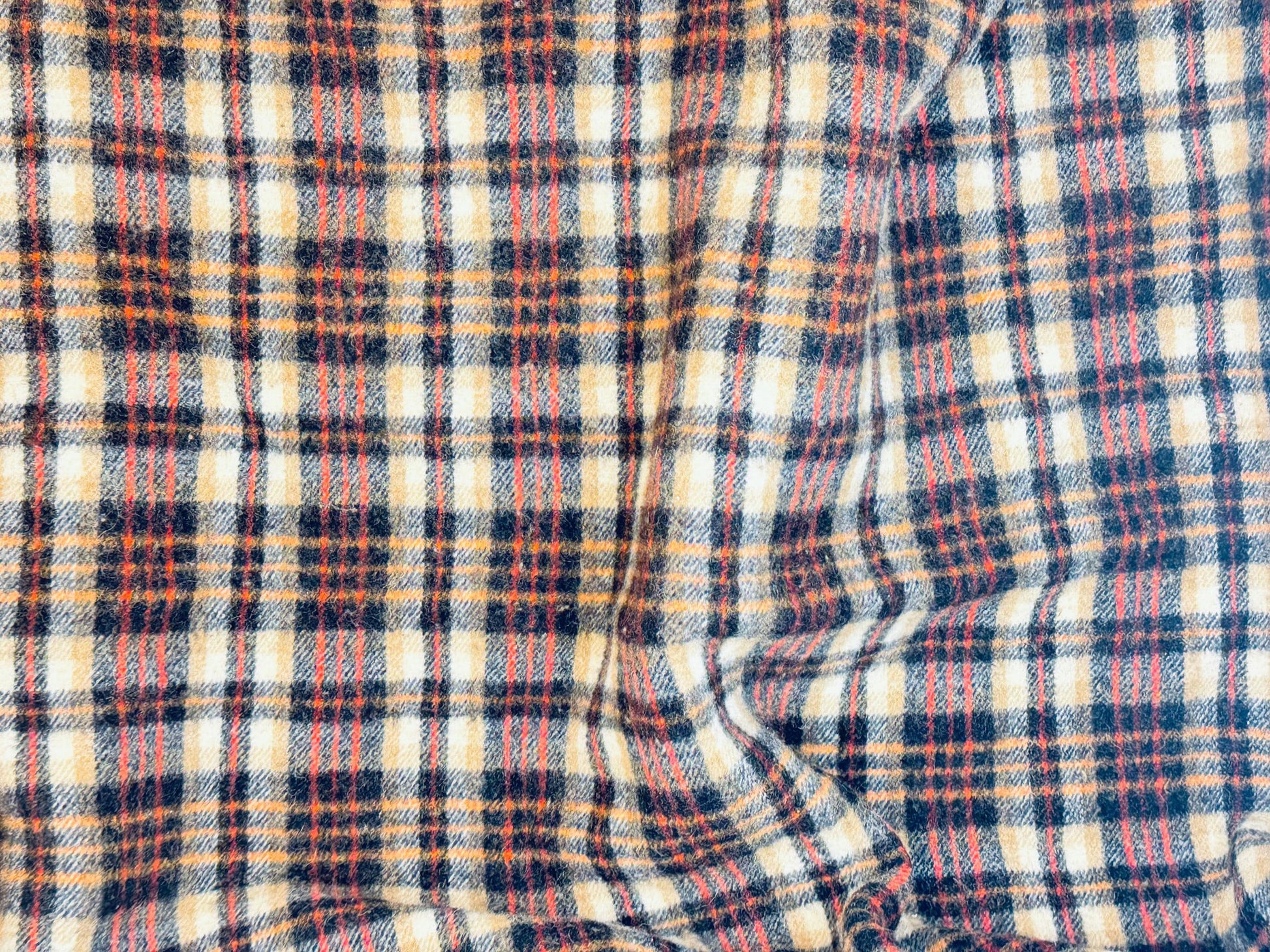 🐑 🛋️ A striking plaid wool-blend throw from the 1980s, beautifully crafted in rich tan and black with subtle rust highlights—perfect for elevating a mid-century lounge or layering over your reading chair. This circa 1980s wool-rich lining-trimmed blanket offers both retro style and comforting utility for your living space.