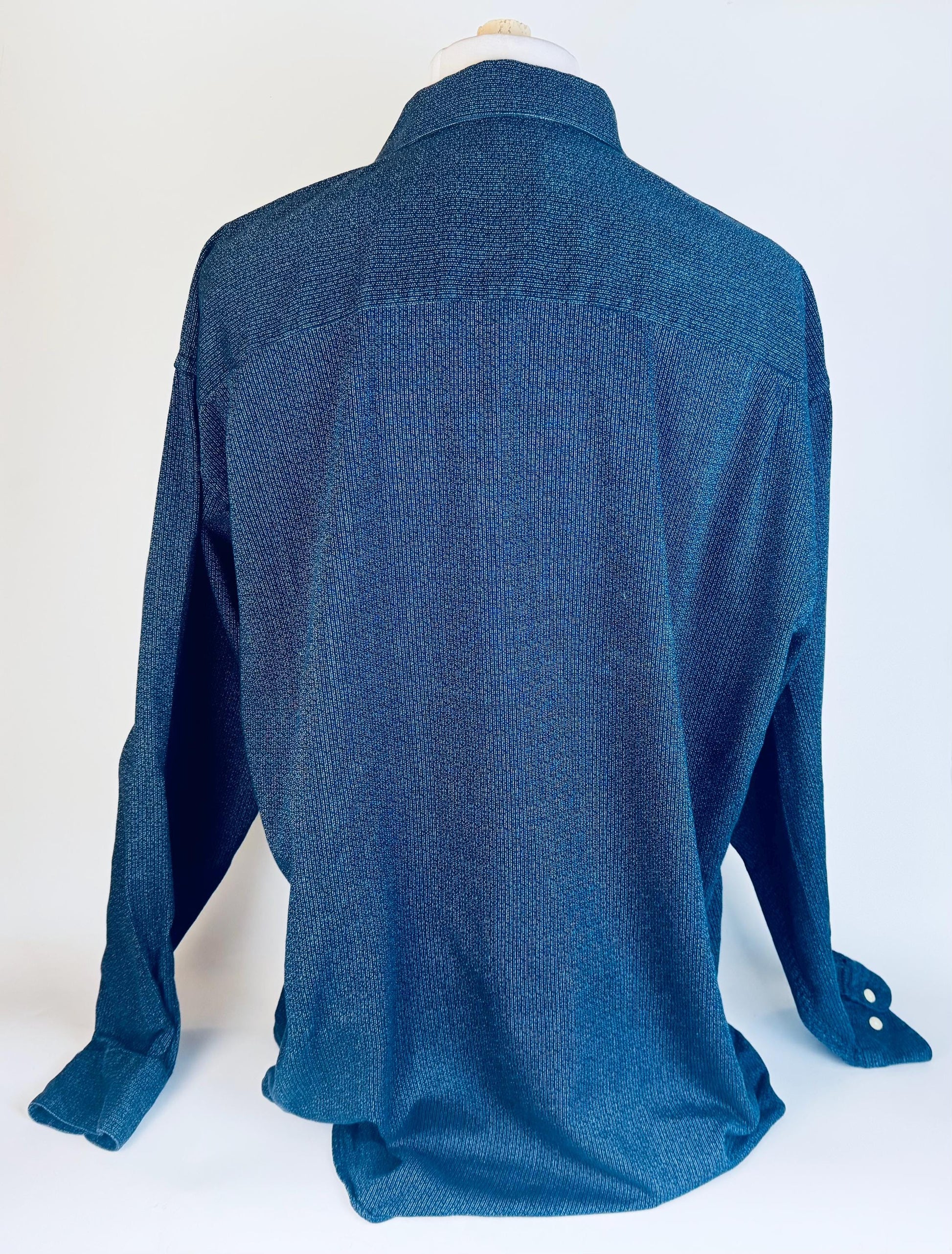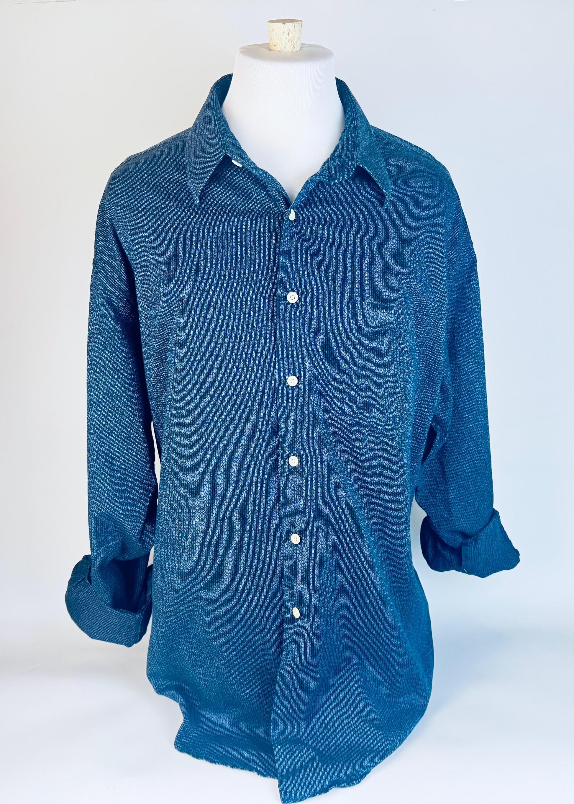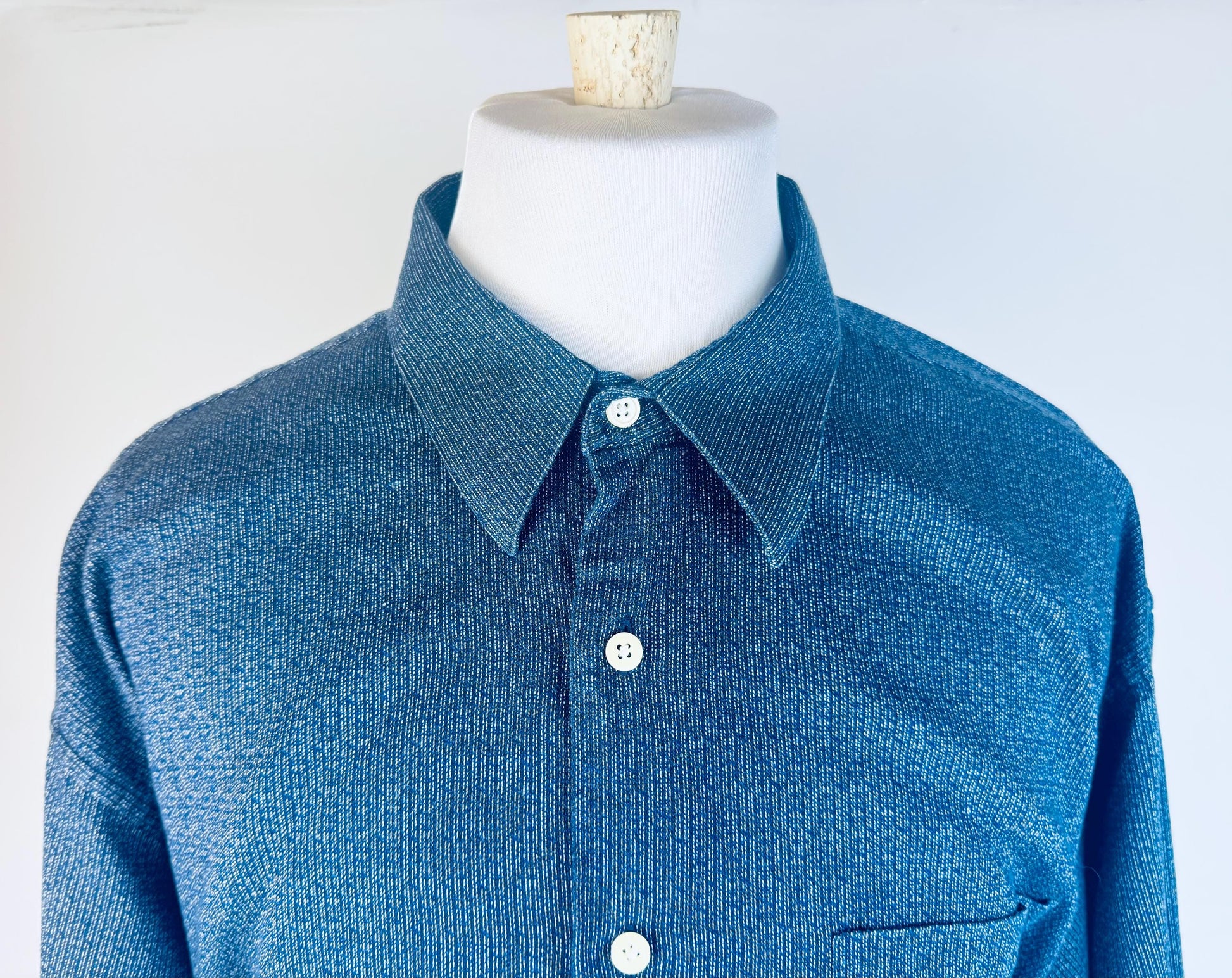Vintage 1990s Christian Dumas Blue Cotton Textured Mens Shirt Size XL Casual Button-Up Top