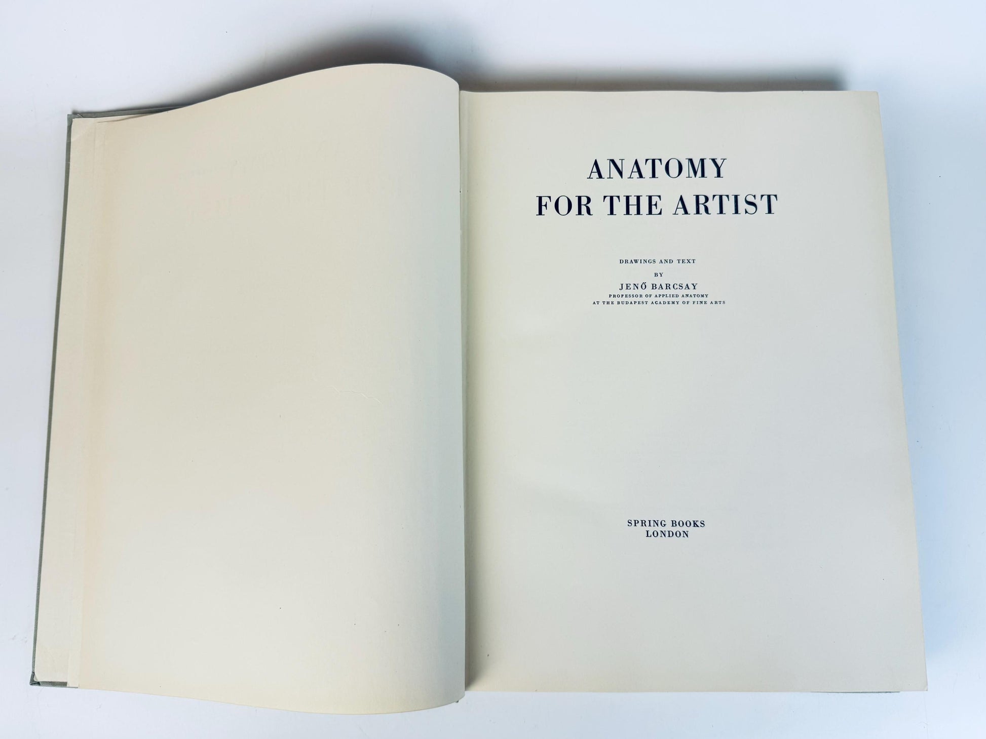 💪 A masterful mid-century art reference, this Anatomy for the Artist (1958) by Hungarian artist and professor Jenő Barcsay offers an exceptional visual study of human form and proportion. Bound in pale sage cloth with elegant brown serif titling, it presents detailed anatomical drawings of skeleton, muscle, and movement—an essential companion for painters, sculptors, and illustrators seeking classical precision. A striking and timeless studio collectible.