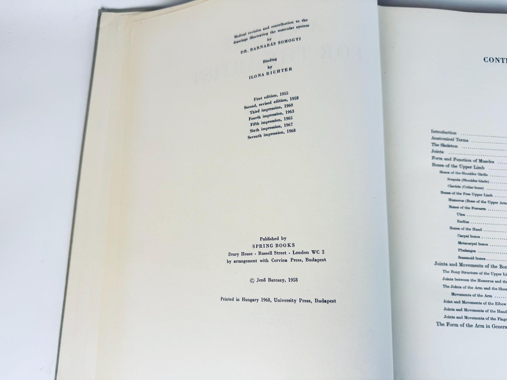Vintage 'Anatomy For The Artist' Coffee Table Book Pale Sage Cloth Bound - 7th Edition (1958) Printed in Hungary By Jenõ Barcsay