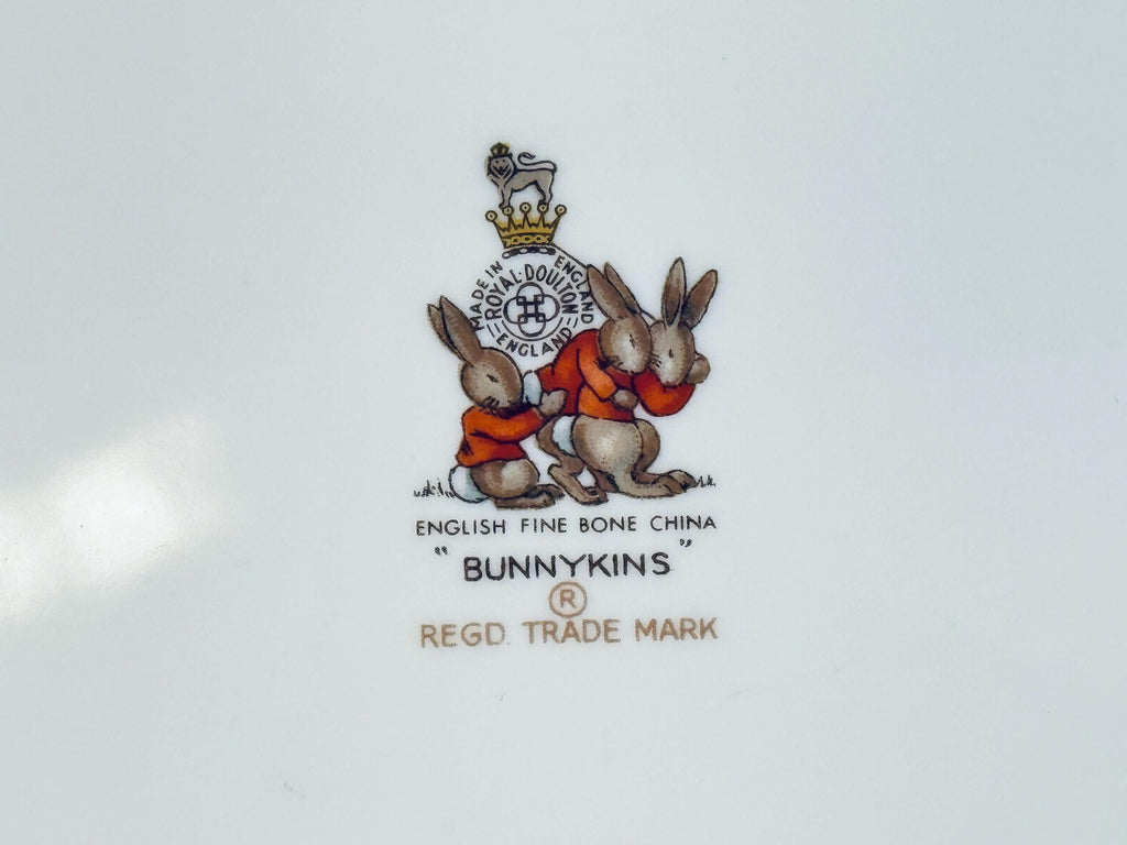 âHistory Behind The Pieceâ Introduced in 1934, Bunnykins became one of Royal Doultonâs most beloved nursery lines, originally illustrated by Barbara Vernon, a nun and daughter of a Doulton factory manager. By the 1970s, the line had achieved global popularity, with whimsical scenes of rabbit families capturing everyday life in imaginative detail. Produced in England from fine bone china, Bunnykins pieces remain highly sought after by collectors for their enduring charm and craftsmanship.