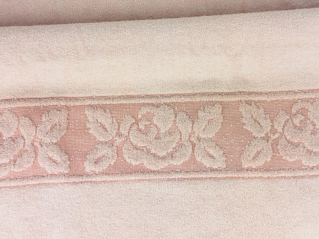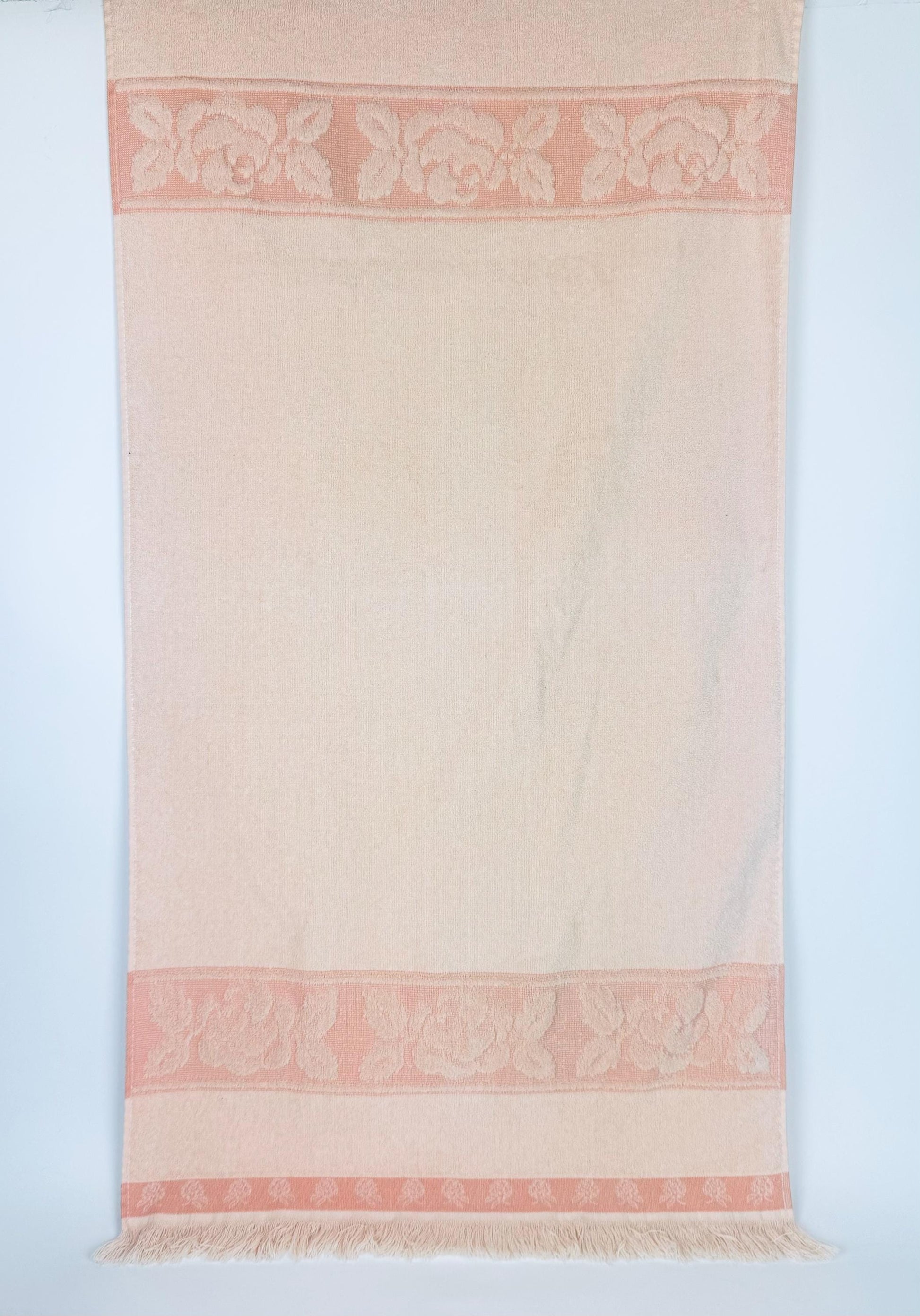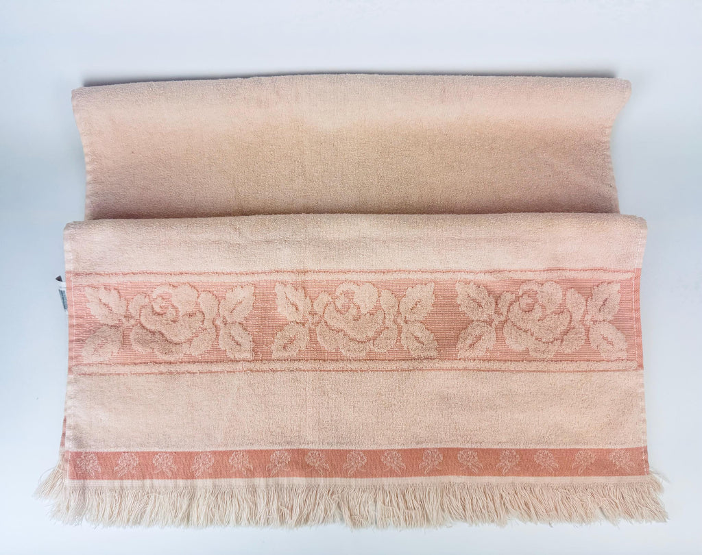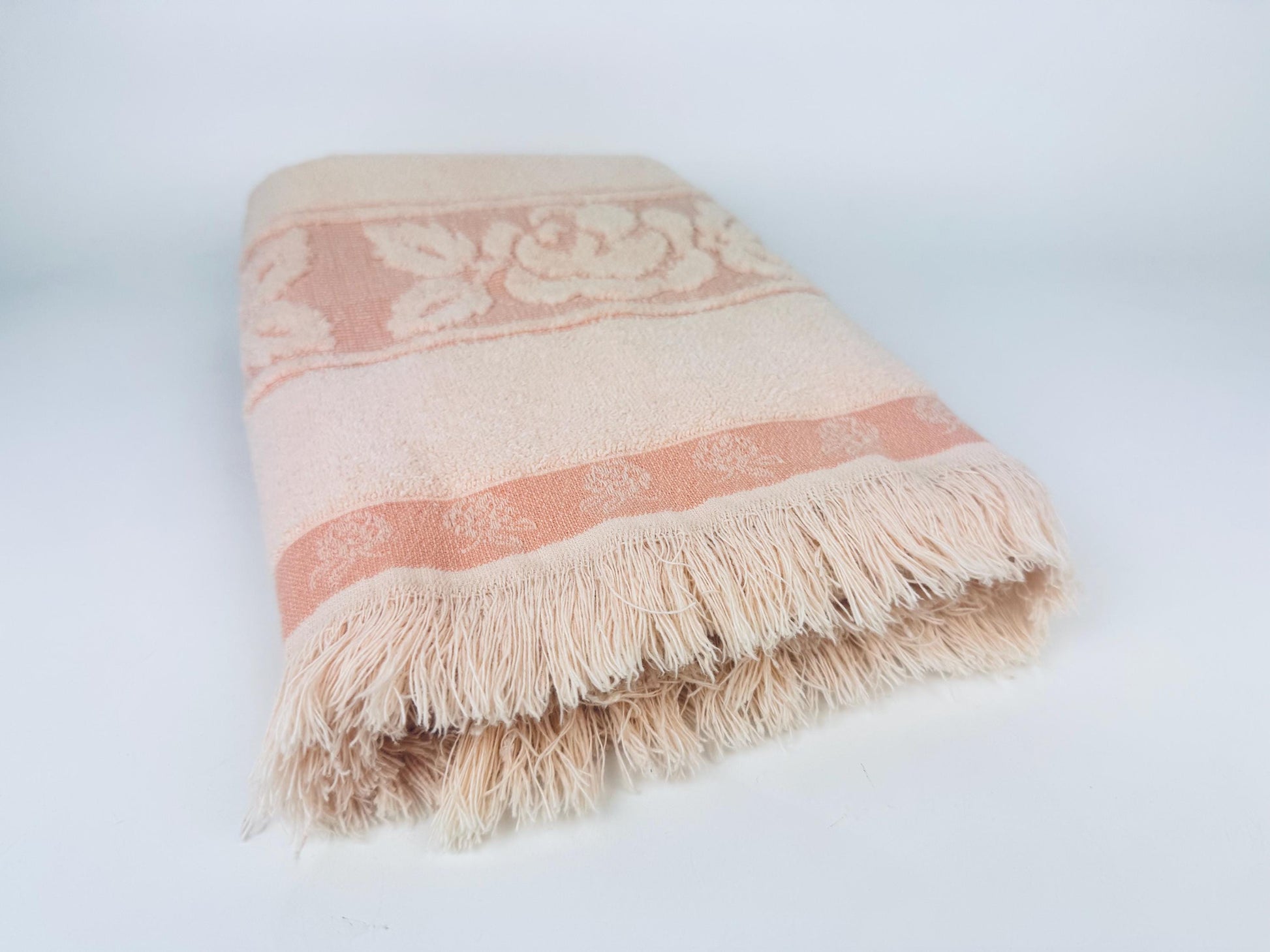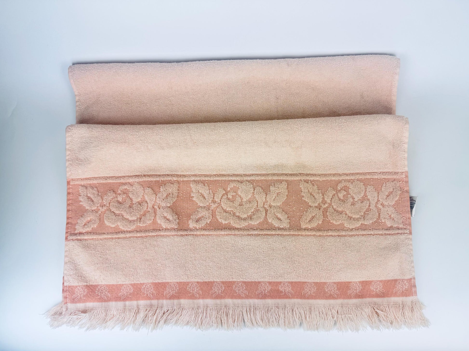 Vintage Cannon Pale Pink Rose Floral Fringe Bath Towel - Made In USA - Cotton/Polyester Blend. Item is in good vintage/used condition - freshly laundered. An excellent piece as much for display as it is for use. Please see all of the photos.