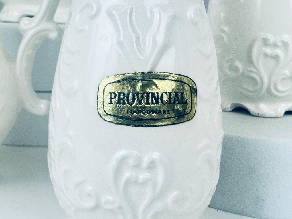 Produced in Japan and imported by Giftcraft Toronto during the 1960s, this line was marketed under the âProvincialâ label and quickly became a bridal registry favourite across North America. The crisp, glossy finish and uniform ivory tone suit both traditional and modern interiorsâwhether styled as a full tea set for afternoon entertaining or repurposed as decorative vessels for florals or seasonal displays. Each piece is sold separately, making it easy to build a custom collection or replace cherished heirlooms.