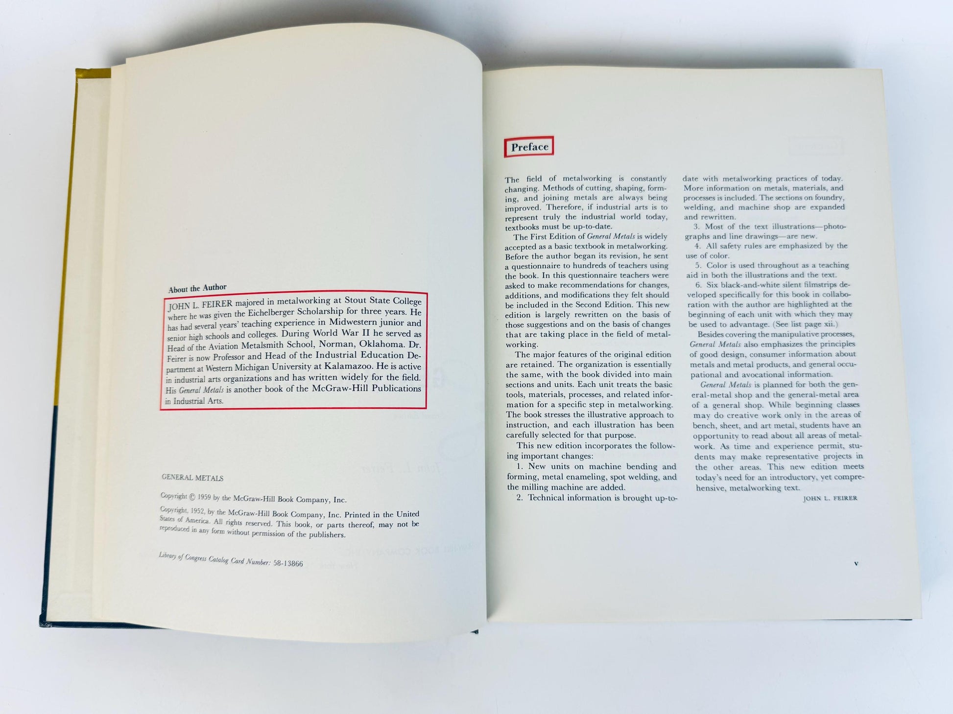 Vintage Industrial-Arts Hardcover | Mustard & Slate “General Metals Textbook, 1959, Technical Reference Book