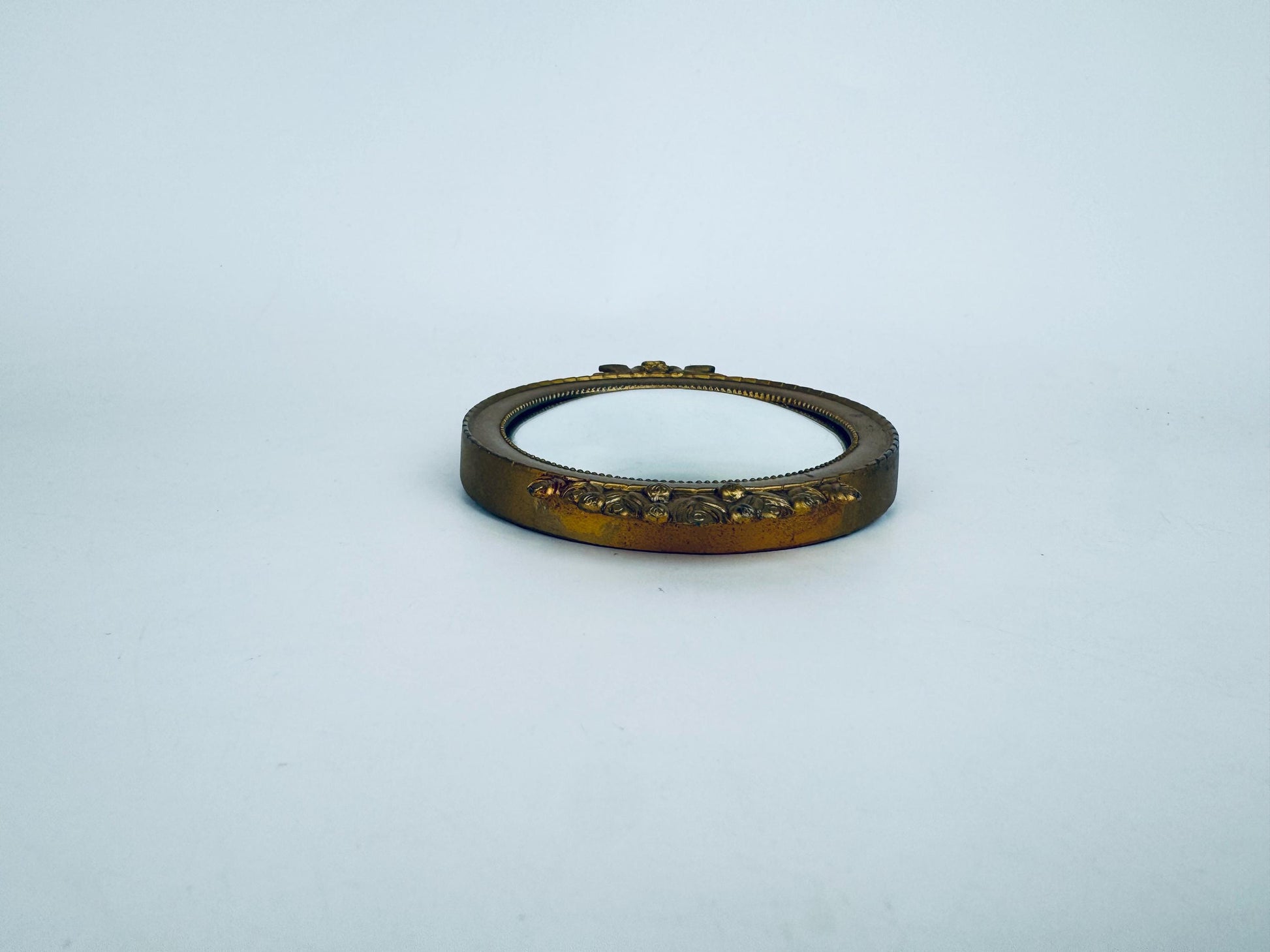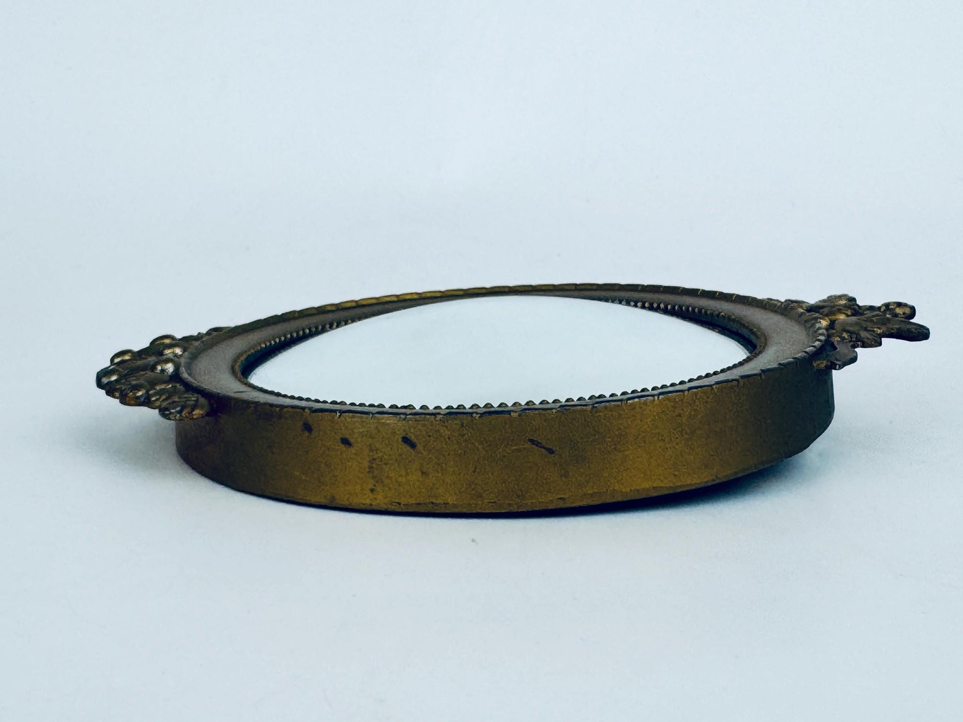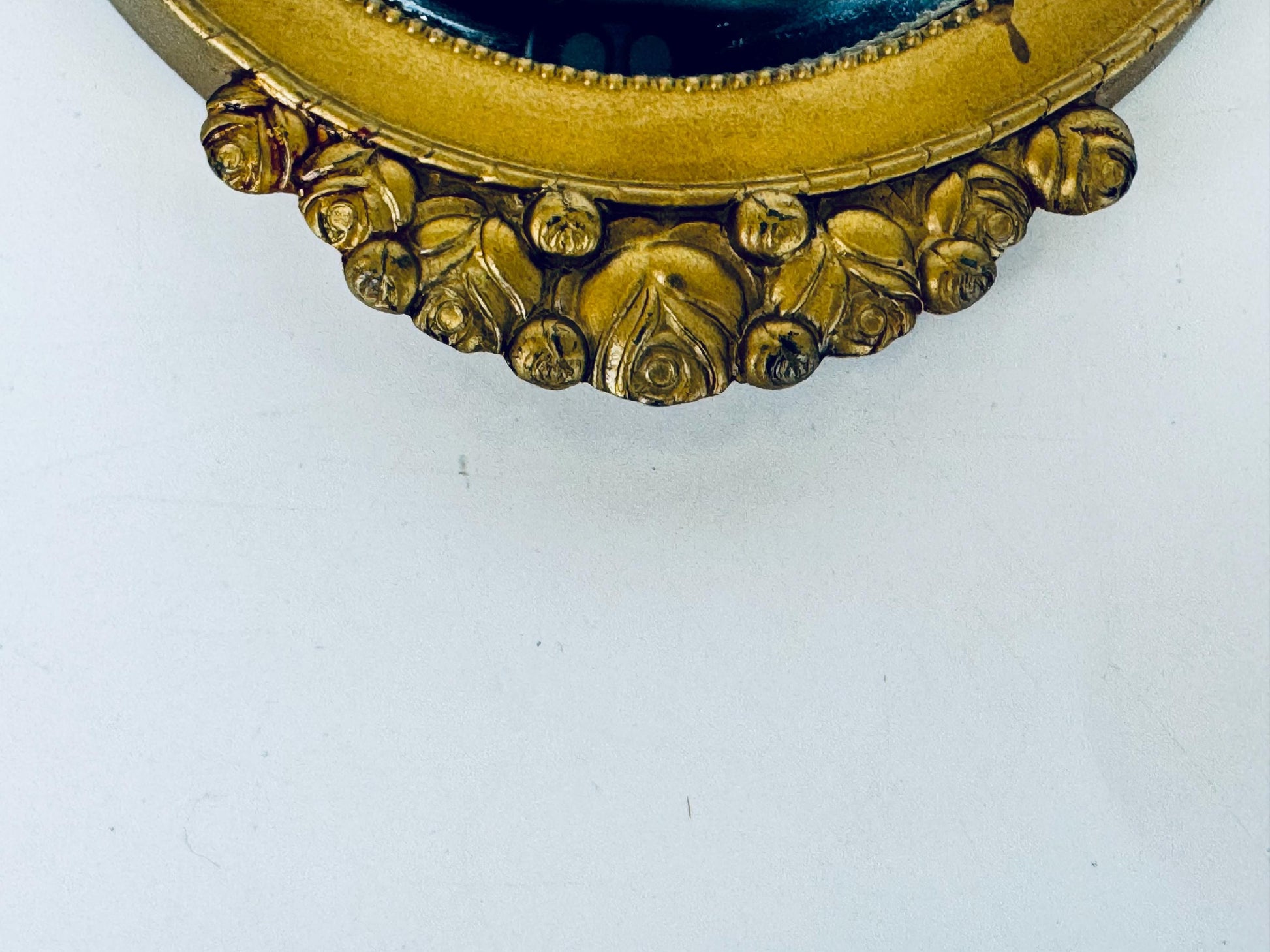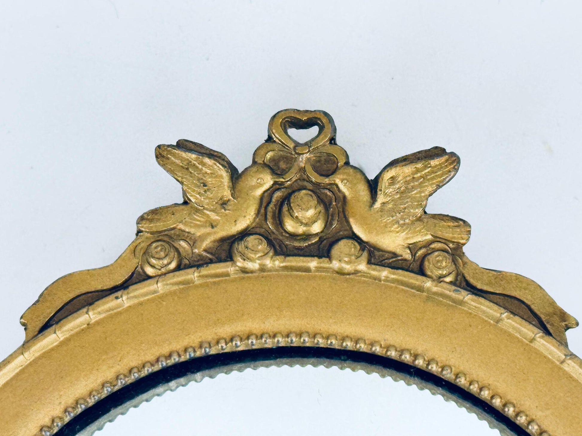 Vintage Small Brass Convex Wall Mounted Mirror - Neoclassical Dove & Rose Motif