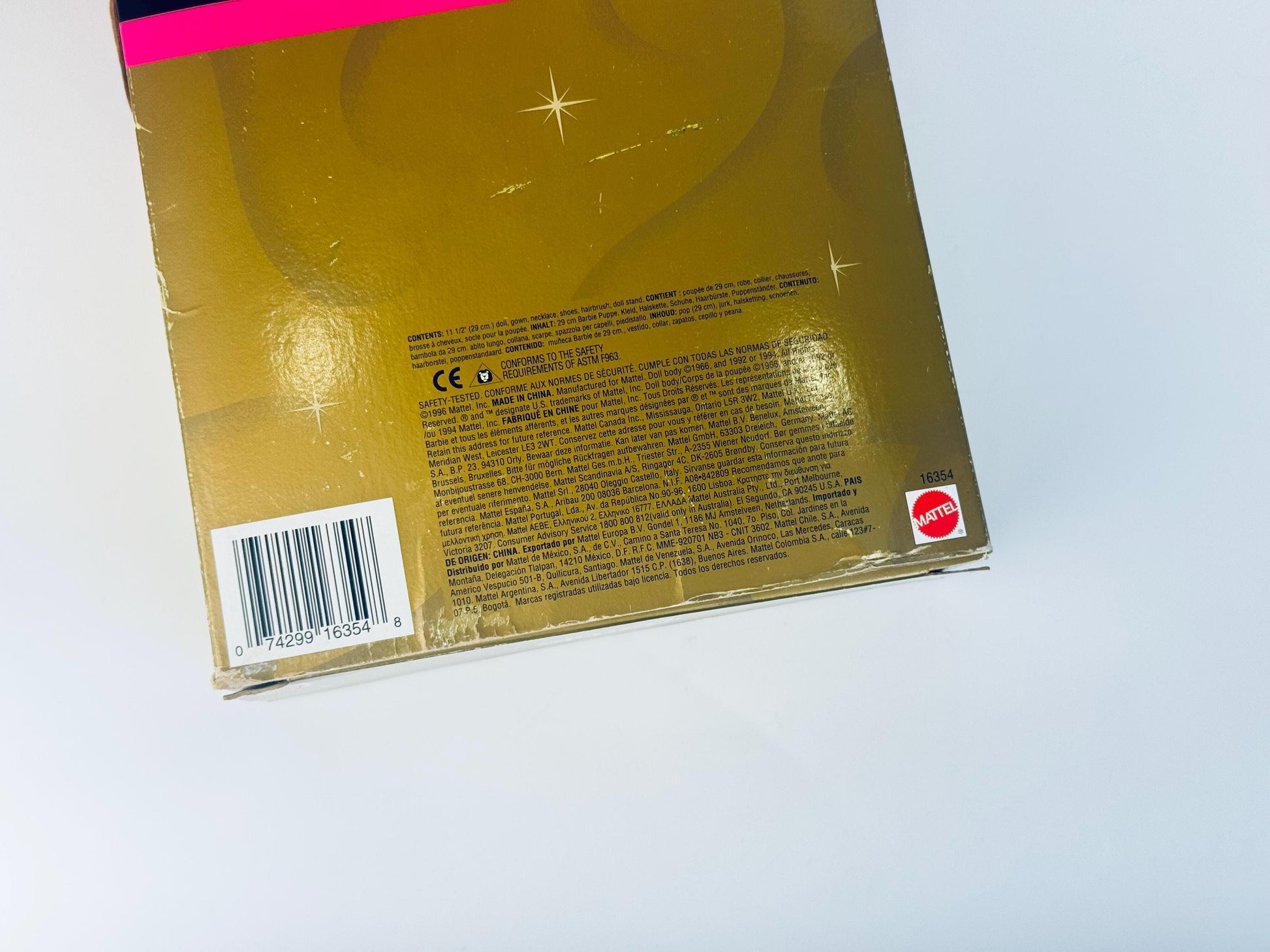 ❄️🎀 A rare holiday showpiece, this 1996 Winter Rhapsody Barbie (African American/Black version, no. 16354) arrives NRFB in the original gold window box, styled in pink velvet with plush white trim and a sweeping pink-and-black plaid skirt. Created as an Avon Exclusive special edition, the mid-’90s design reads luxe on a bookshelf, cabinet, or doll vignette. Details such as the satin bow brooch and choker remain pristine for confident display.