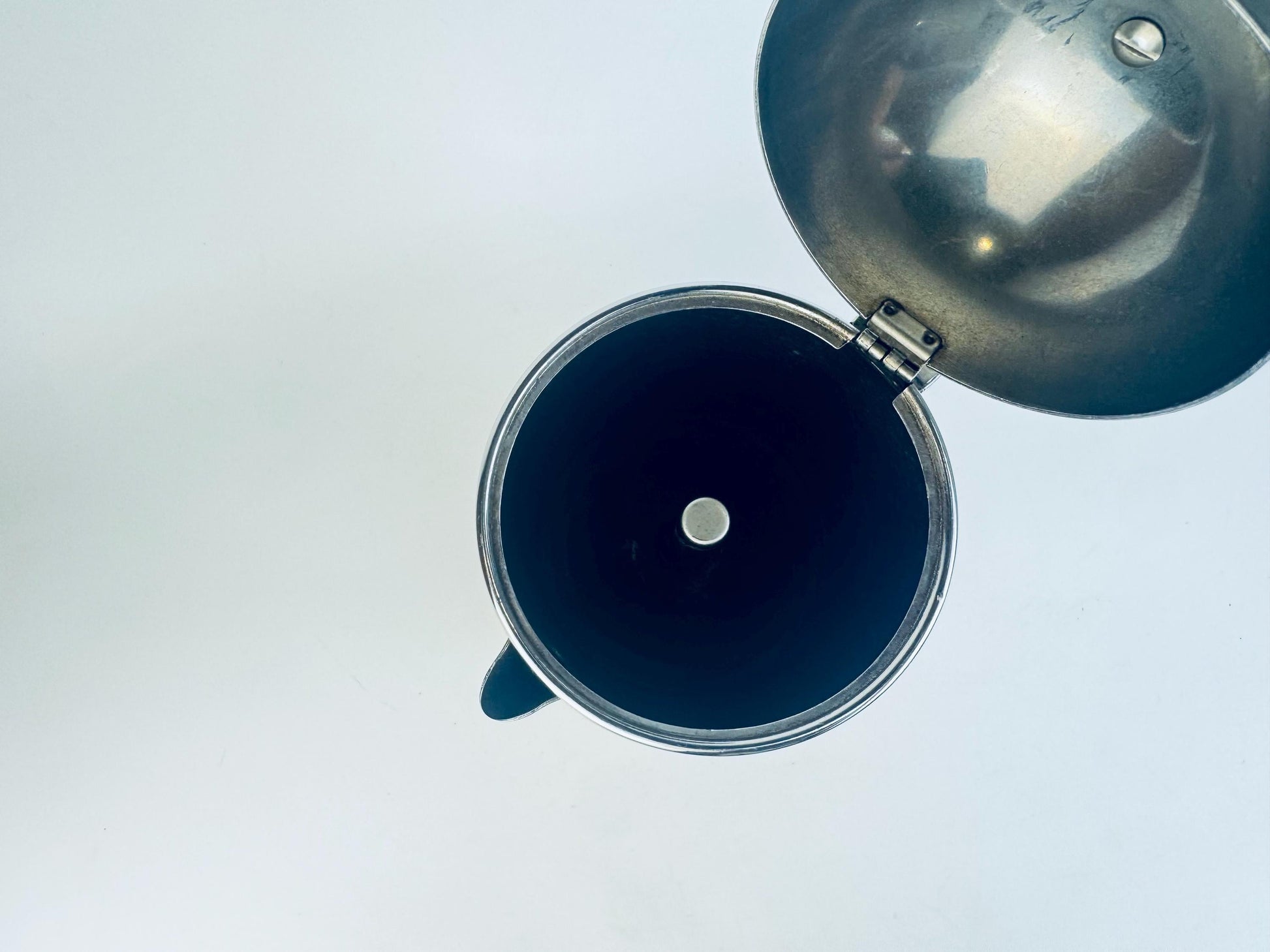 Founded in Varese, Italy in the early 1960s, Vev Viganò became synonymous with sophisticated Italian coffeeware. The Kontessa line, produced throughout the 1980s, introduced a high-lustre 18/10 stainless finish offset with gold detailing—reflecting the postmodern Italian aesthetic popularised by Alessi and Guido Bergna contemporaries. Today, Kontessa models remain sought-after for their quality, weight, and sculptural silhouette that bridges utility and design.