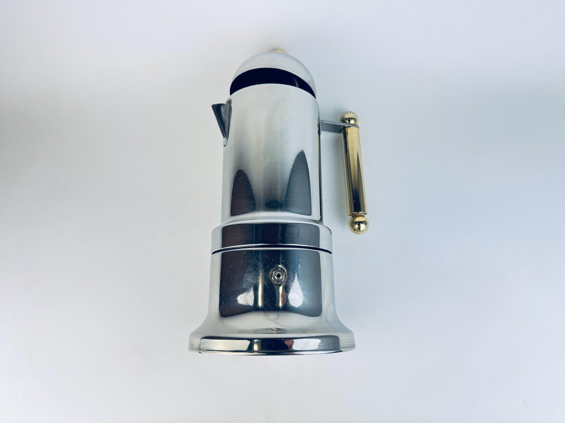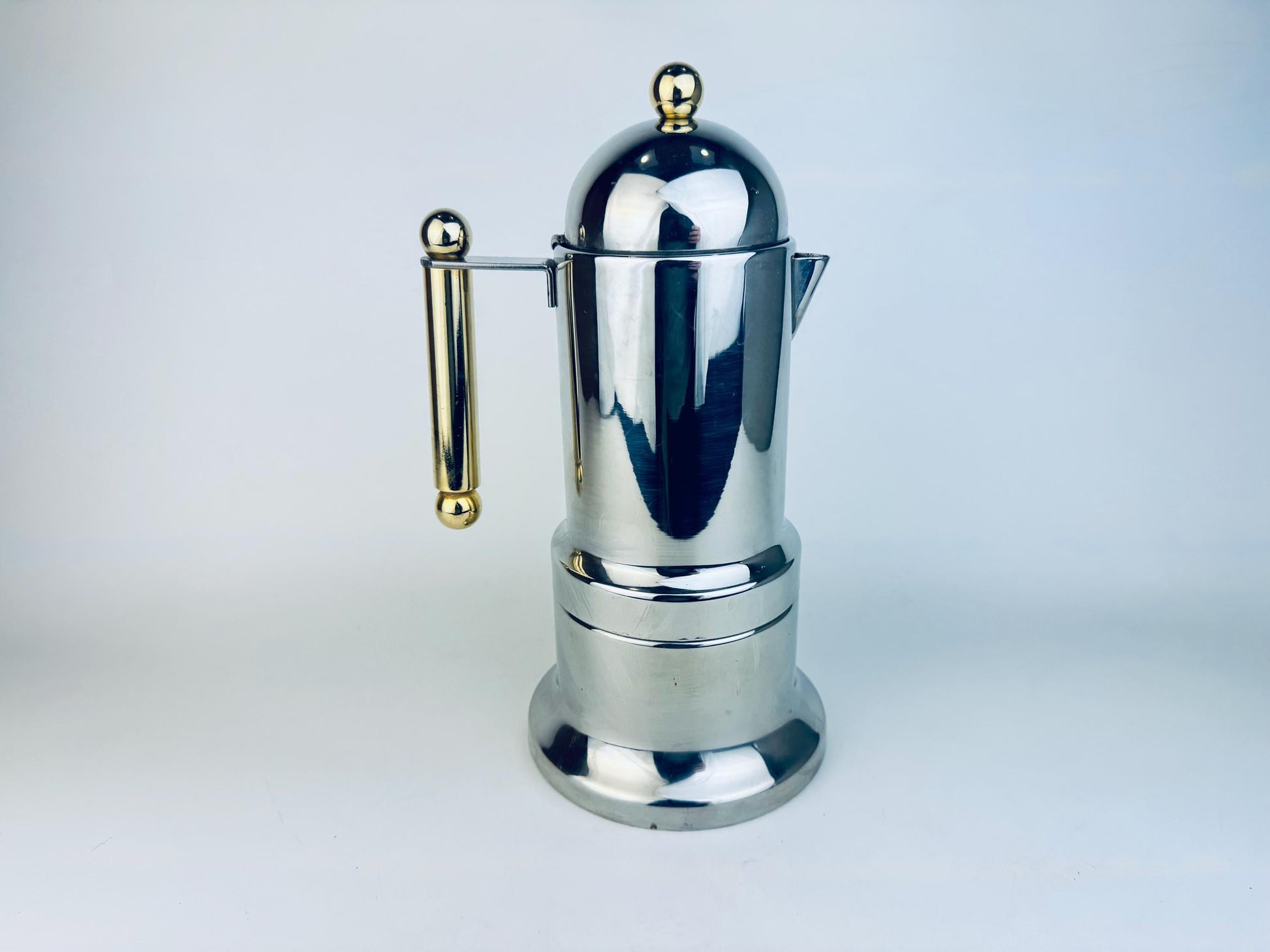 Vintage Vev Viganò Kontessa 'INOX' Italian 18/10 Silver Stainless Steel & Gold Italian Stovetop Espresso Maker - Made In Italy