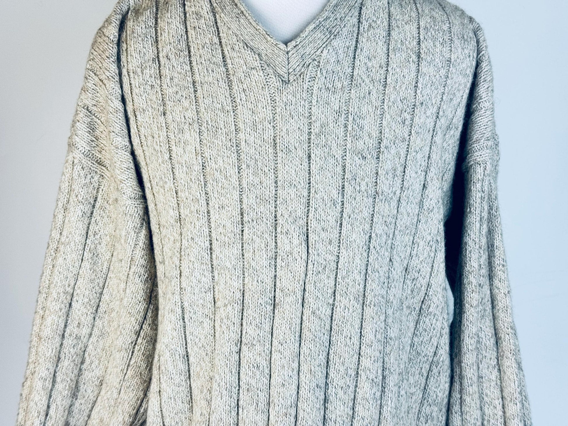đ± đ A softly marled knit with rugged charm, this vintage WindRiver Outfitting Co. sweater captures the understated Canadian outdoors style of the 1990s. Made in Canada from a cotton-wool blend, it features wide ribbed vertical lines, a comfortable V-neck, and natural beige tonesâperfect for layering on cool evenings or casual weekend wear. A timeless wardrobe essential with authentic vintage appeal. đ± đ